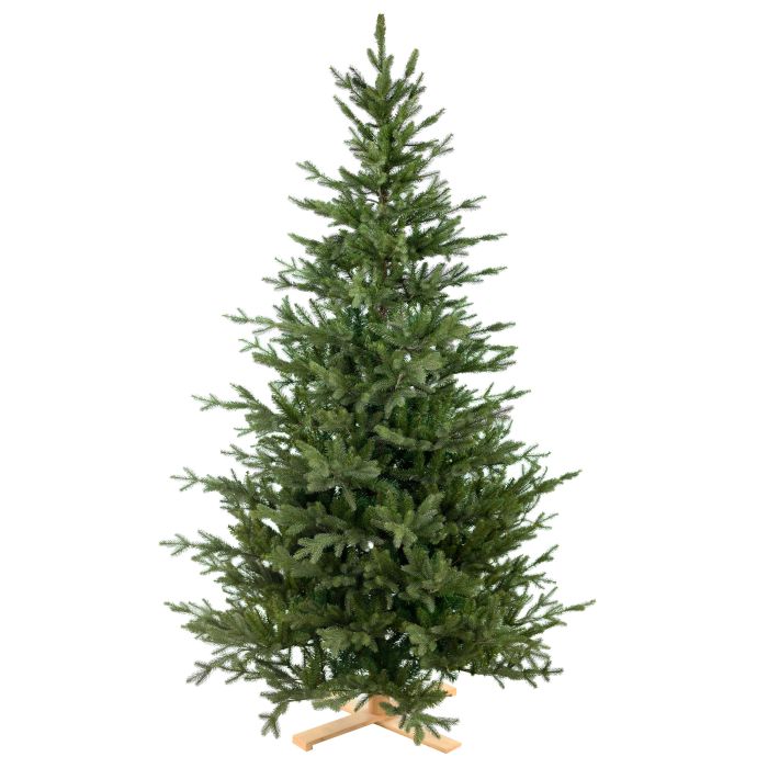 Künstlicher X-Mas Baum/Tanne VALLETTA in Farbe grün mit Holzständer besteht aus PE/PVC Nadeln. Der ca. 180 cm hohe Weihnachtsbaum hat einen Durchmesser von ca. 115 cm und eignet sich als Deko für das heimische Wohnzimmer oder für Restaurants, Schaufenster, Messestände, usw.