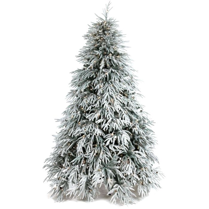 - Biegbare Nadelzweige in weiß, gefrorene Optik, mit echten Zapfen, LED Lichterkette warmweiß mit 600 Lichtern