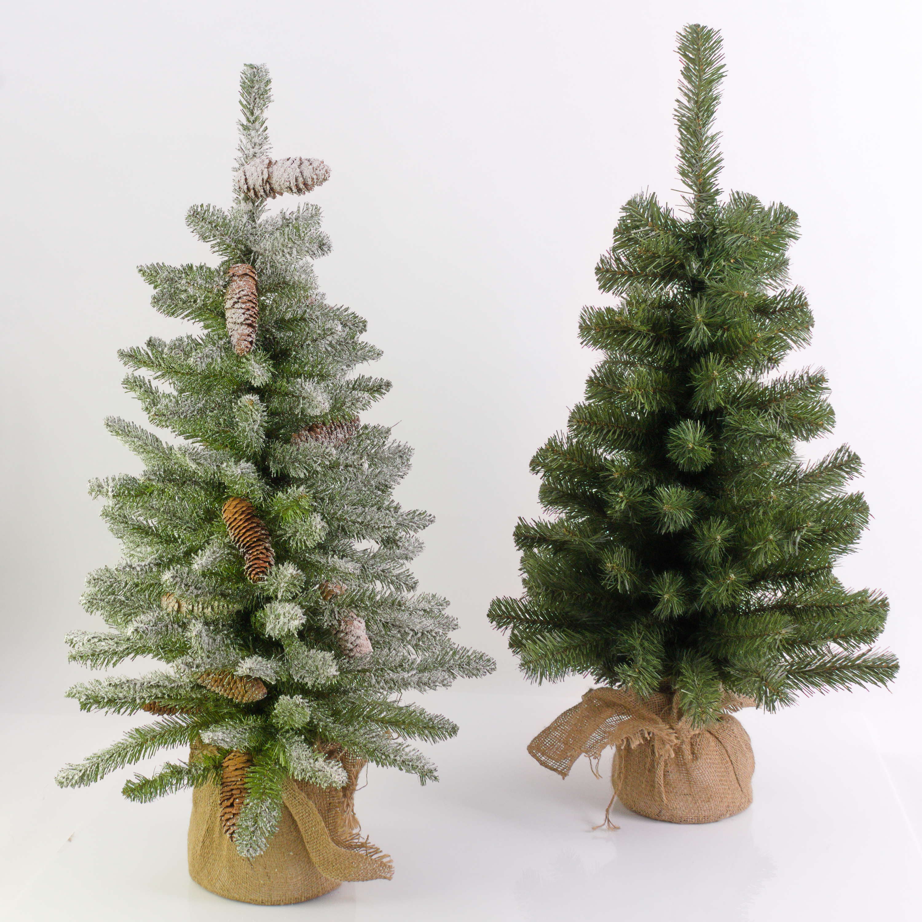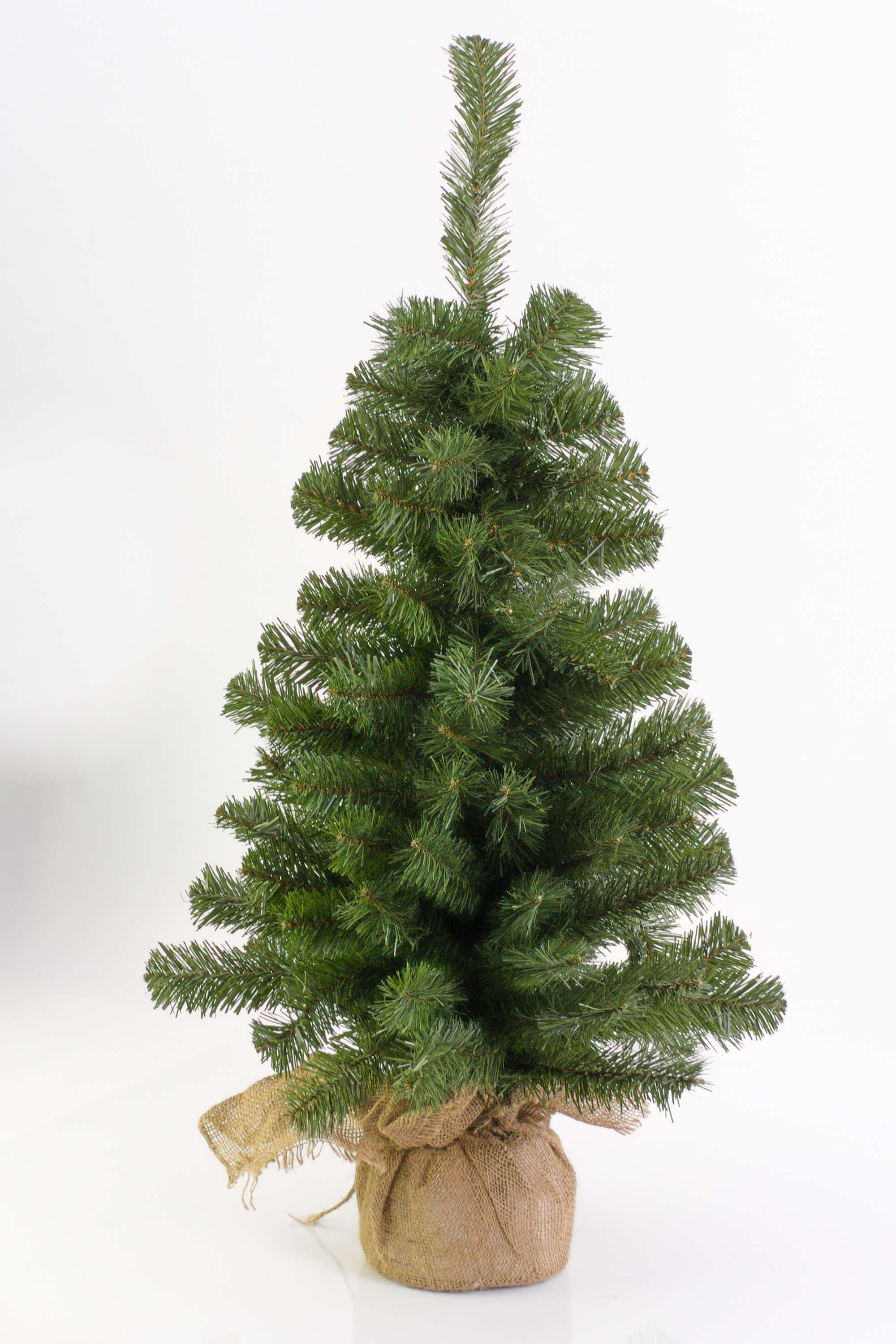 Künstliches Tannenbäumchen/Weihnachtsbaum WARSCHAU in Farbe grün mit Jutesack besteht aus PVC Nadeln. Der ca. 60 cm hohe Tisch Tannenbaum hat einen Durchmesser von ca. 40 cm und eignet sich als Deko für den Flur, auf dem Sideboard, Couchtisch, Empfangstresen, usw.