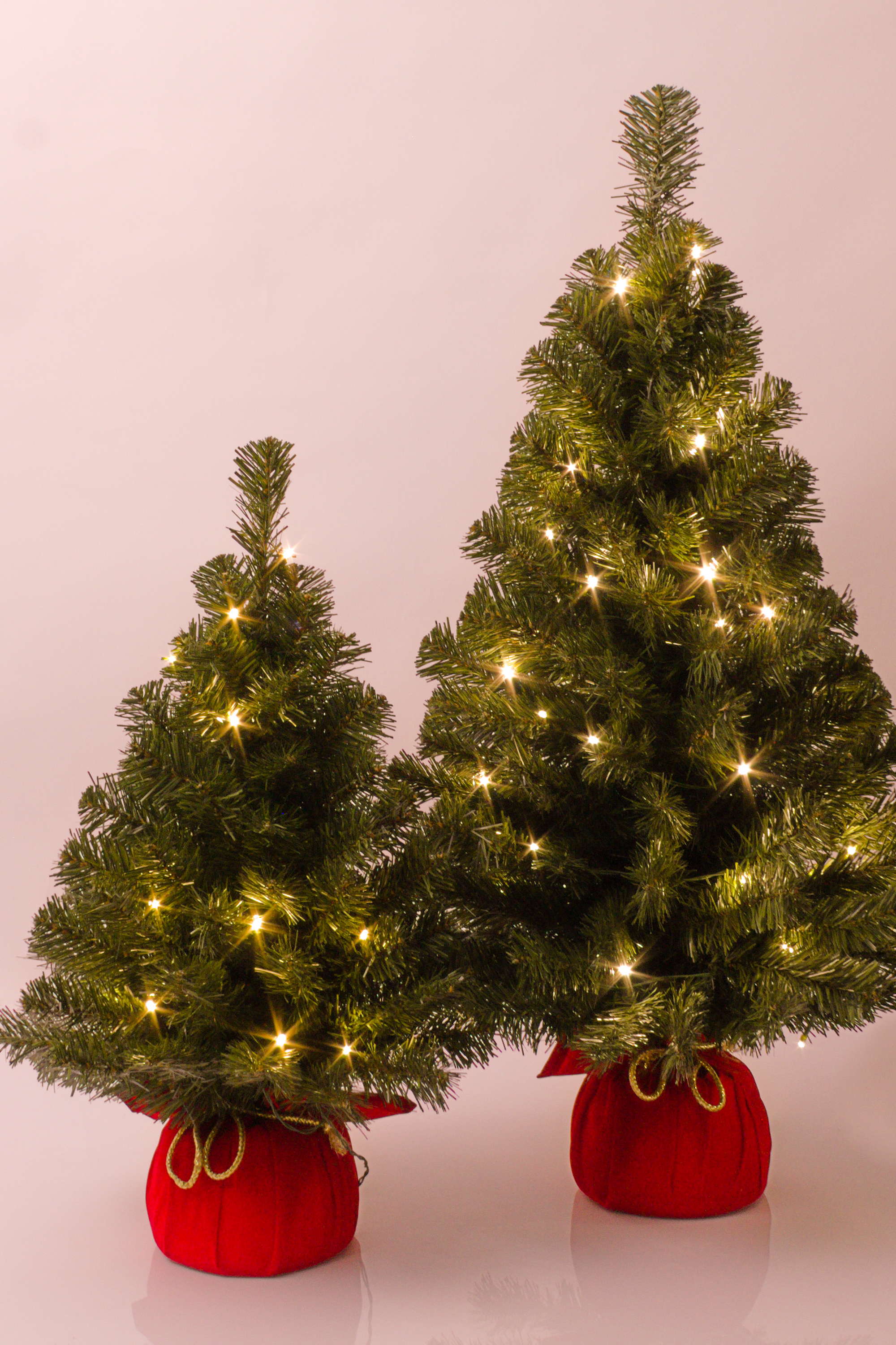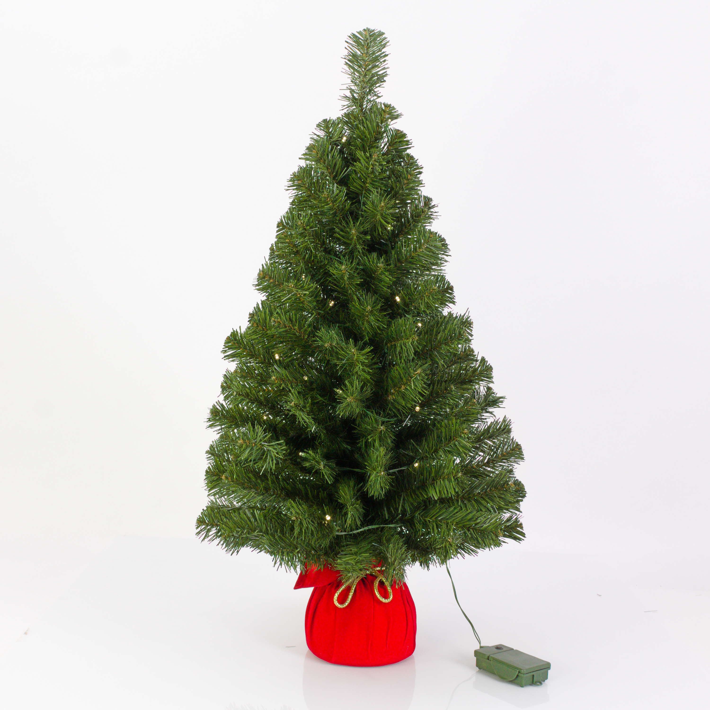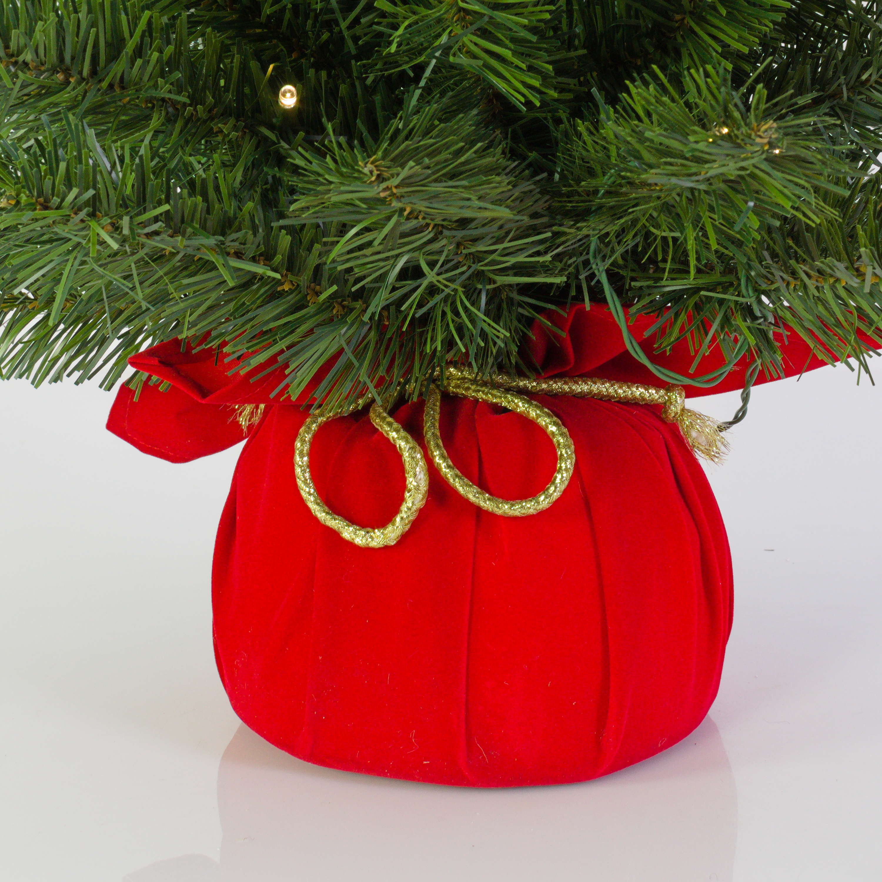 Kunst Tannenbaum WARSCHAU, Jutesack rot, LEDs, 90cm, Ø50cm