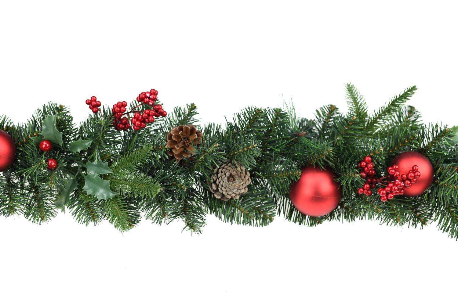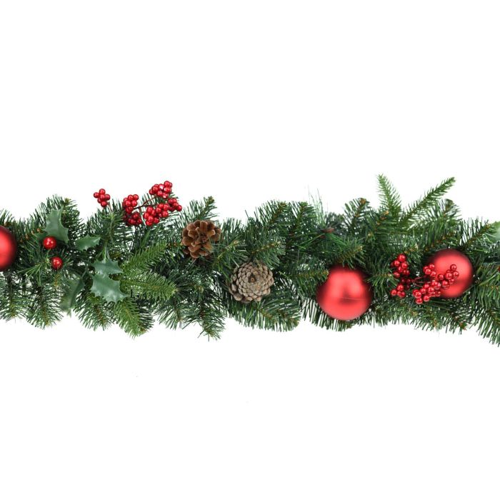 - Künstliche Weihnachtsgirlande mit Ilex, roten Beeren, Zapfen und roten Kugeln für Ihre Weihnachtsdekoration
