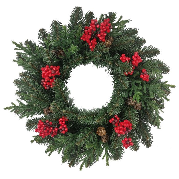 Kunst Tannenkranz STAVANGER, Fichte, Beeren, Zapfen, grün-rot, Ø50cm