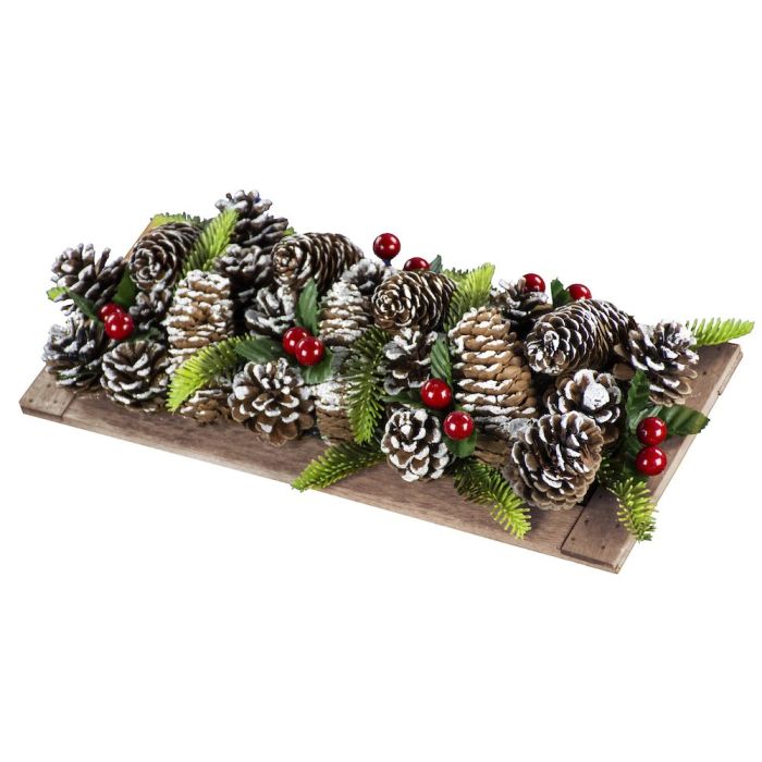 Kunst Tannenzapfen Tischgesteck AUGUSTA, Beeren, beschneit, 35x15cm