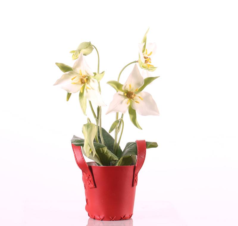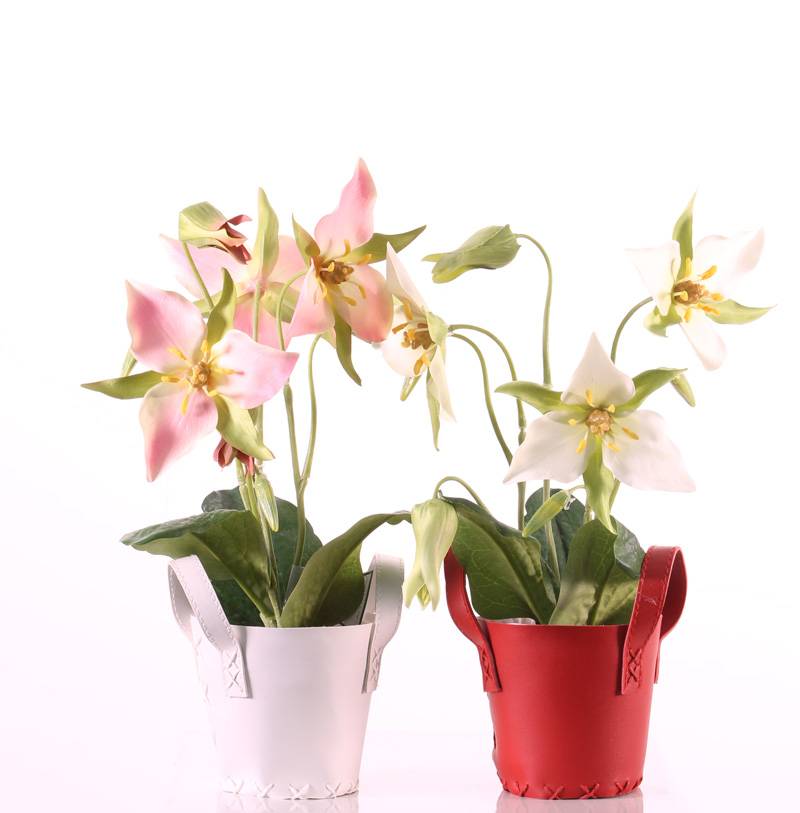 Künstliche Dreizipfellilien MADIE mit einer Gesamtlänge von ca. 40 cm in der Farbe weiß-grün.