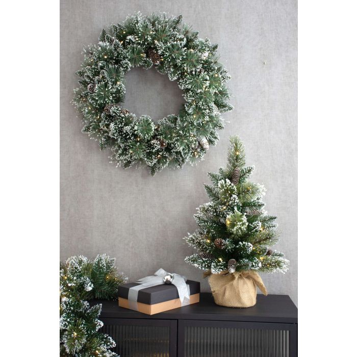Kunst Winterkranz CALGARY, Zapfen, LEDs, Frost, Ø75cm
