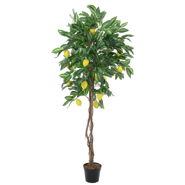 Zitronen stehen in unserer Kultur häufig dafür, aus etwas Ungünstigem etwas Positives zu machen. Das trifft auch auf diesen künstlichen Zitronenbaum zu. Mit seinen ca. 180 cm passt der Kunstbaum in nahezu jeden Raum und bringt Exotik und Urlaubsstimmung auch in die Winkel, die für echte Pflanzen zu wenig Tageslicht bieten. Nutzen Sie den dekorativen Citrusbaum, um aus einem gewöhnlichen Zimmer einen Südsee-Traum zu kreieren.