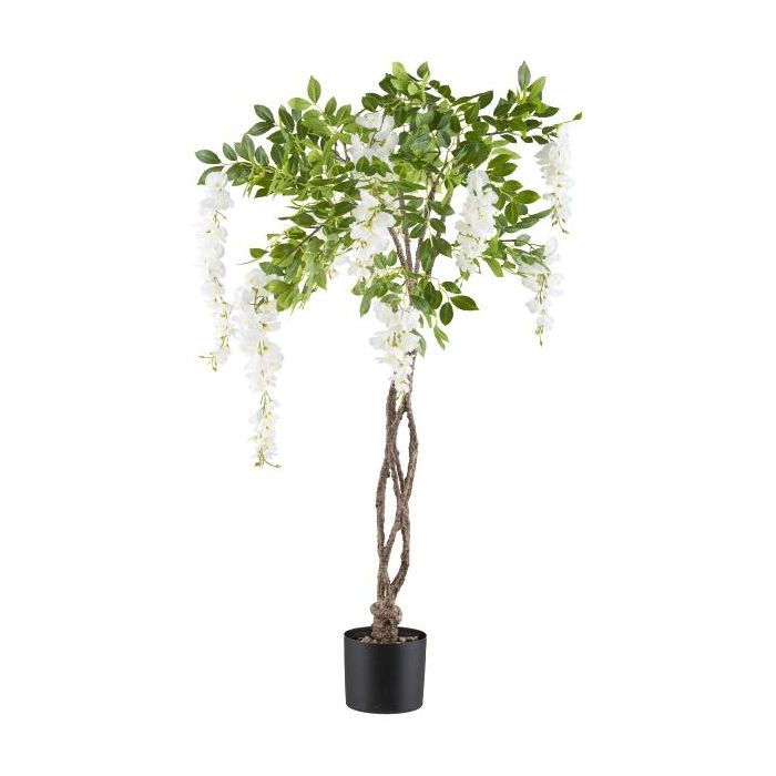 Kunstbaum Blauregen SINKE mit Blüten, geflochtener Kunststamm, weiß, 115cm