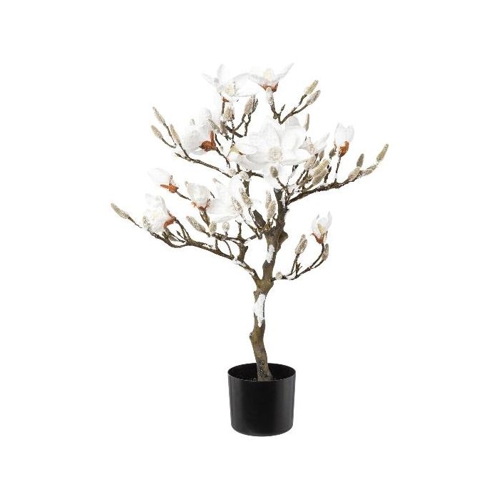 Kunstbaum Magnolie DOLS, Kunststamm, mit Blüten, beschneit, 85cm