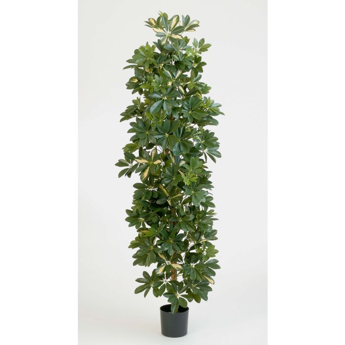 Die künstliche Schefflera / Strahlenaralie ANDREW hat getopft eine Gesamthöhe von ca. 180 cm. Die künstliche Pflanze hat eine Säulenform mit ca.1739 grünen Blättern.
