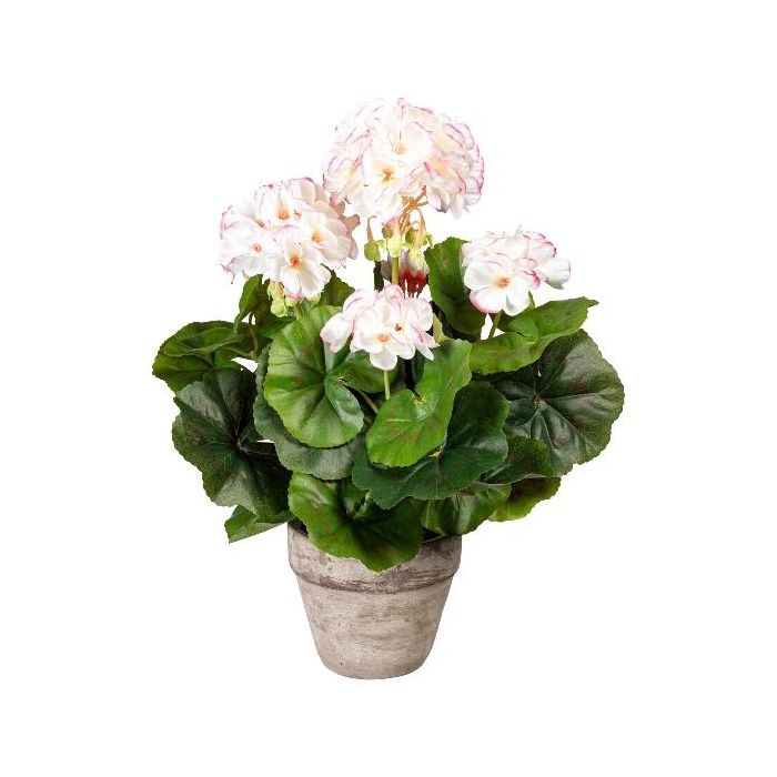 Kunstblume Geranie KLUMOR im Zementtopf, weiß-rosa, 35cm