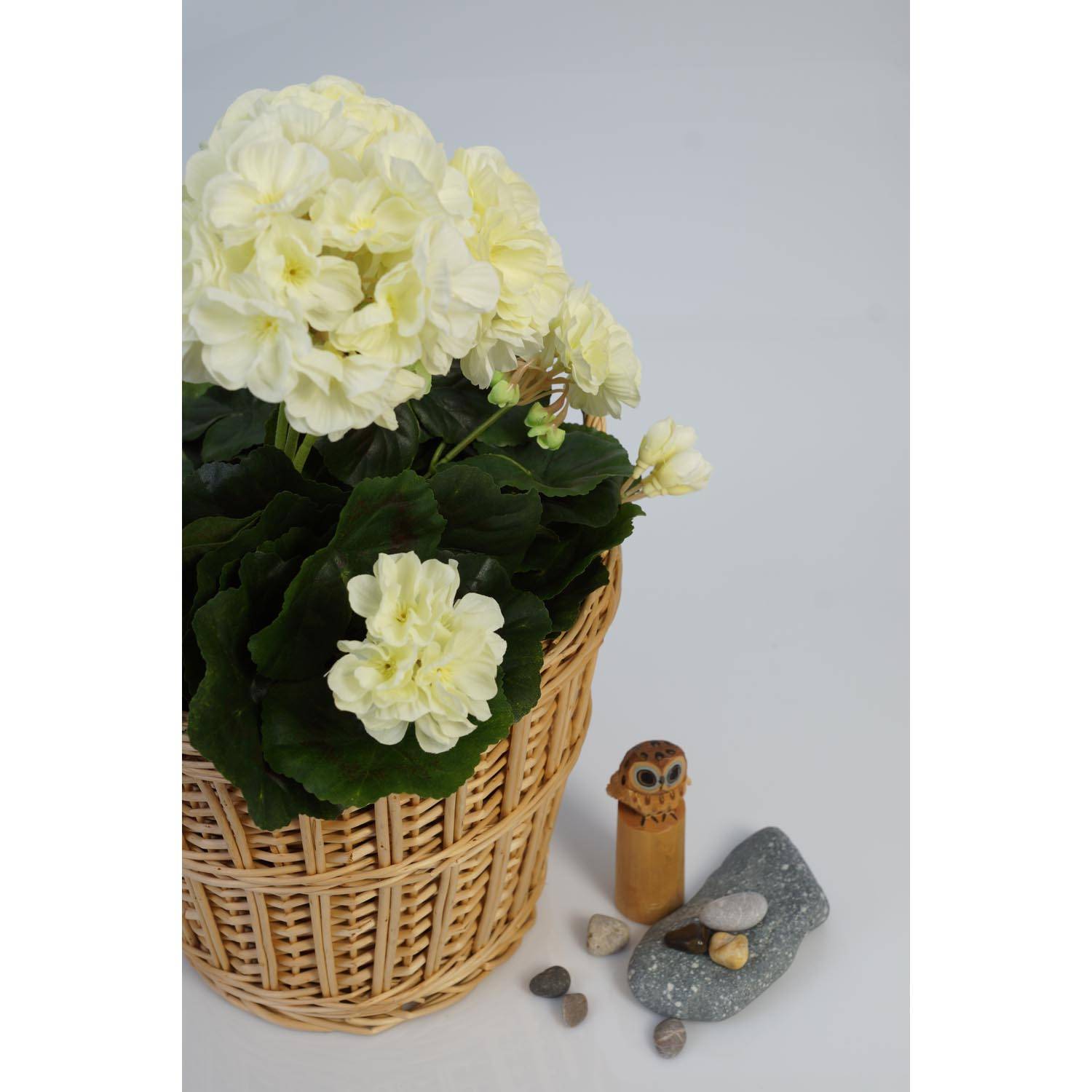 Die künstliche Geranie MIA schmückt mit ihren hübschen, creme farbigen Blüten und Knospen beispielsweise festliche Anlässe wie z.B. Hochzeiten, Kommunion und Firmenfeiern. Die prachtvolle Seidenblume ist ca. 35 cm hoch und sehr dekorativ.