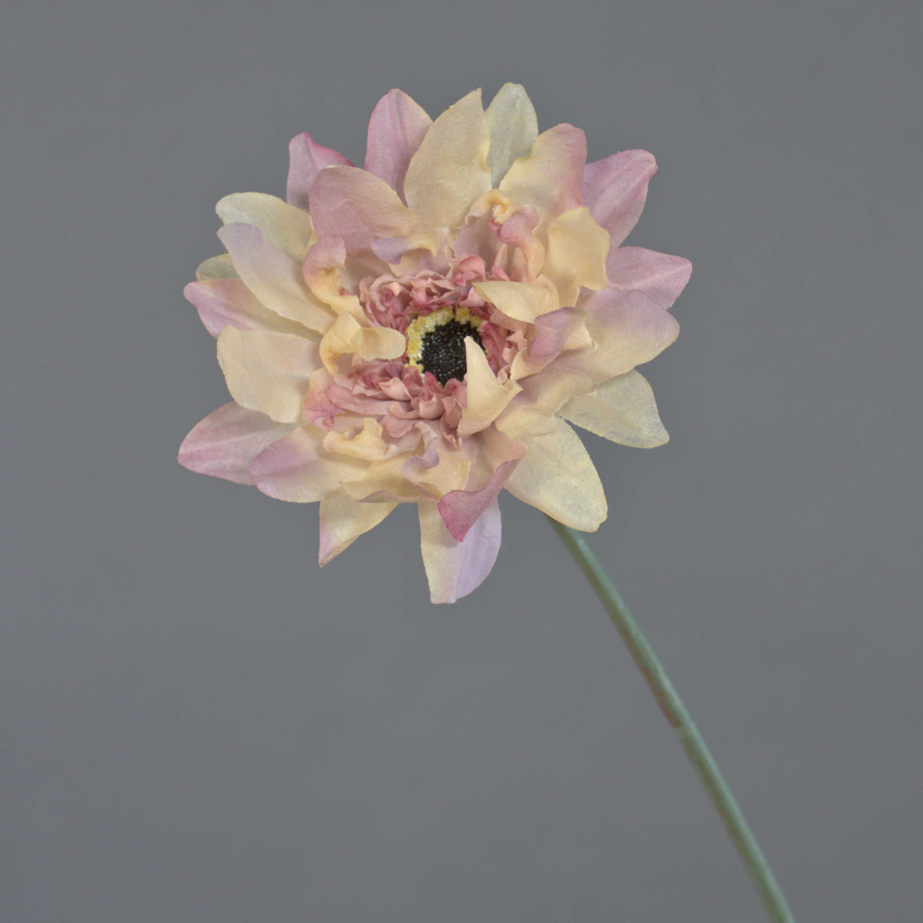 Die künstliche Stielblume PAMILLA in der Farbe altrosa-creme hat ein Gesamtmaß von ca. 65 cm und ist auf Stiel befestigt.