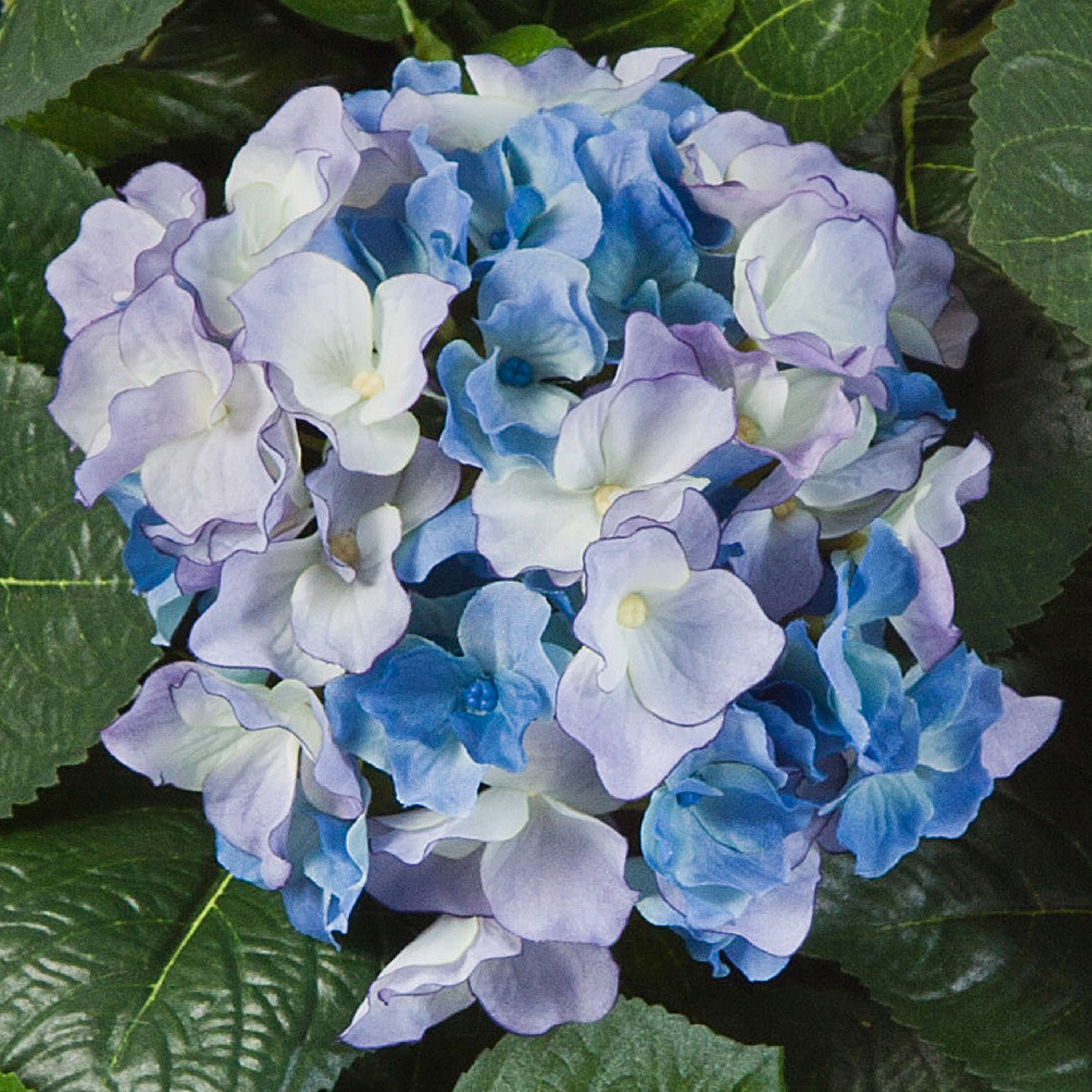 Unechte Hortensie HARUKA (Hydrangea) fällt durch ihre prächtigen Farben auf. Die Gestaltung der ca. 60 cm großen Kunst Hortensie ist durch die feine Ausarbeitung der grünen Blätter und die Detailgenauigkeit der Blütendolden naturgetreu gehalten.