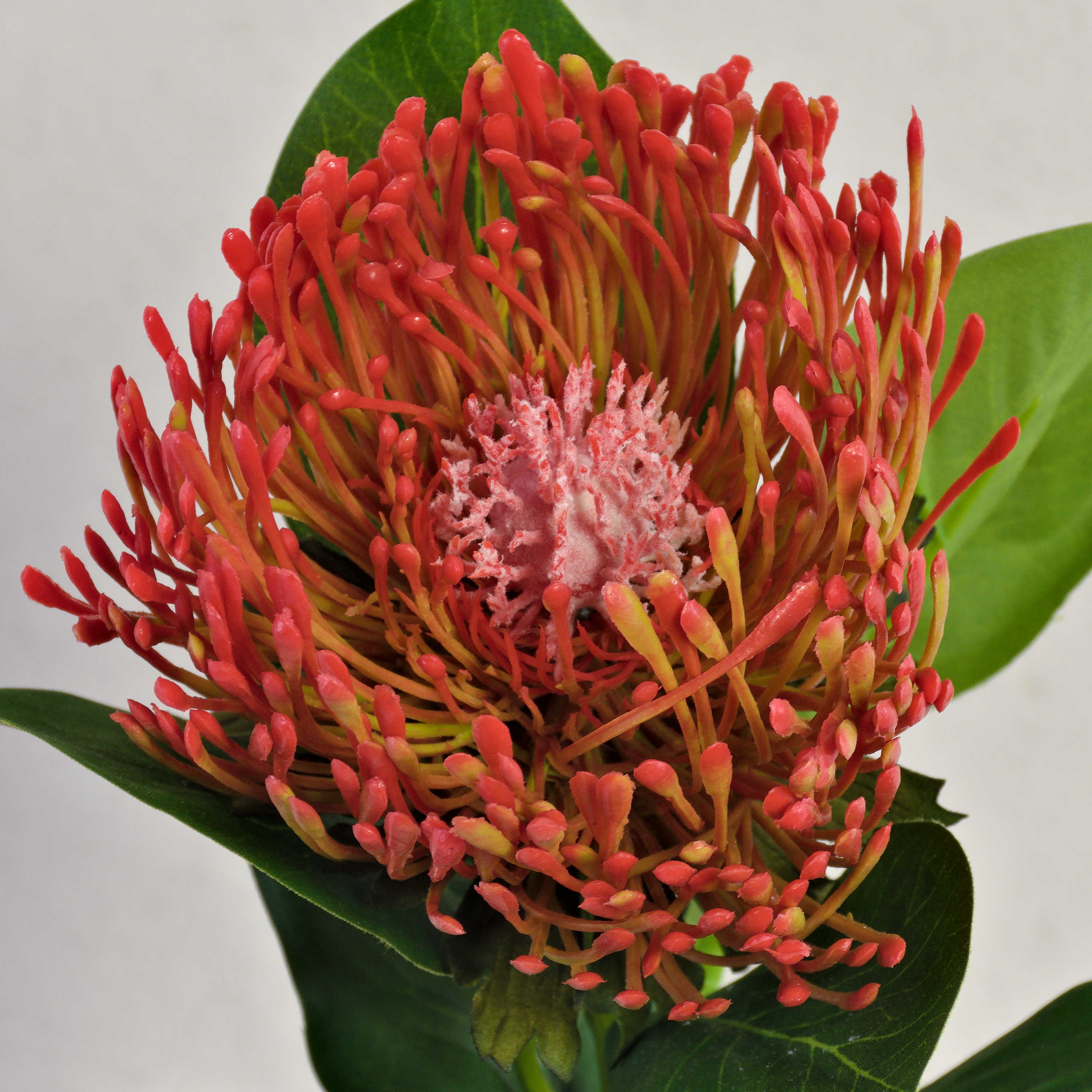 Kunstblume Nadelkissen Protea TANJA, rot-orange, 65cm, Ø10cm