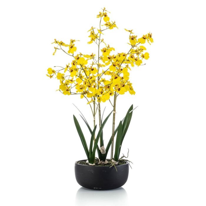 Kunstblume Oncidium Orchidee DEISHA in Dekoschale, Wurzeln, gelb, 70cm