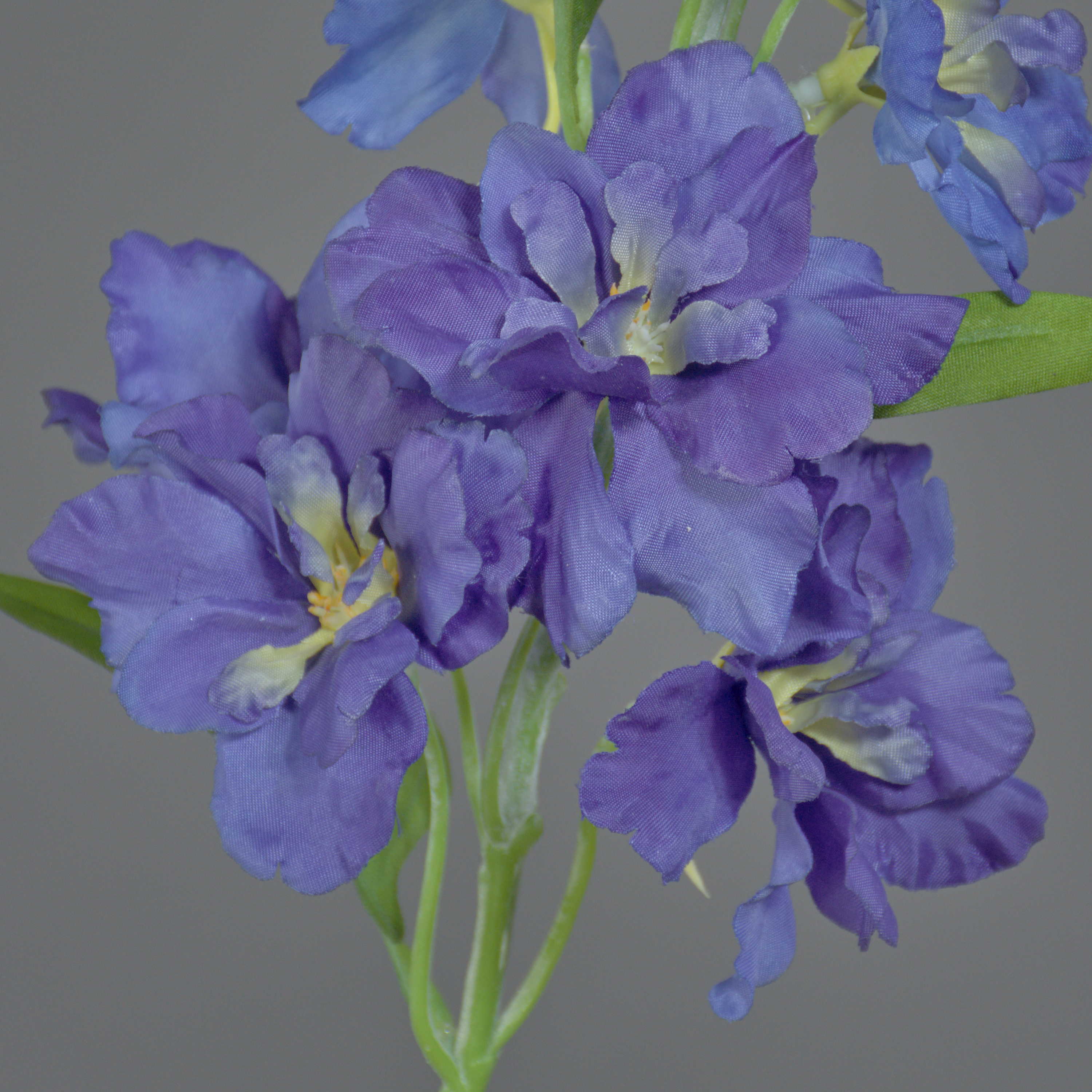 Der künstliche Rittersporn RASMINE in der Farbe dunkelblau hat eine Gesamtlänge von ca. 60 cm und einen Blütendurchmesser von ca. 5-7 cm.