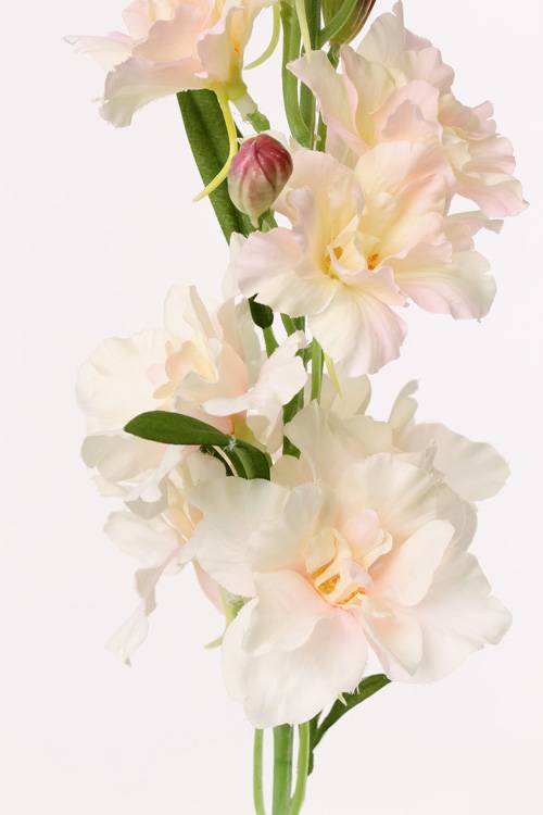 Der künstliche Rittersporn RASMINE in der Farbe rosa-weiß hat eine Gesamtlänge von ca. 60 cm und einen Blütendurchmesser von ca. 5-7 cm.