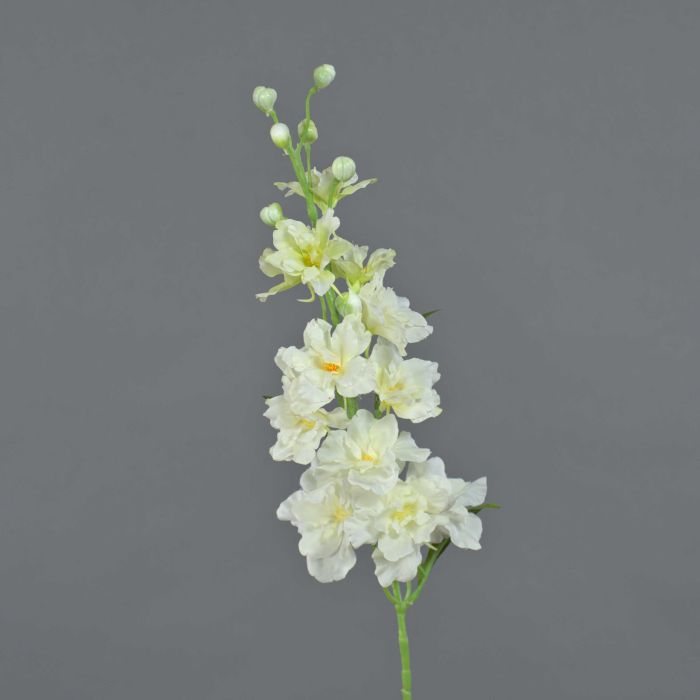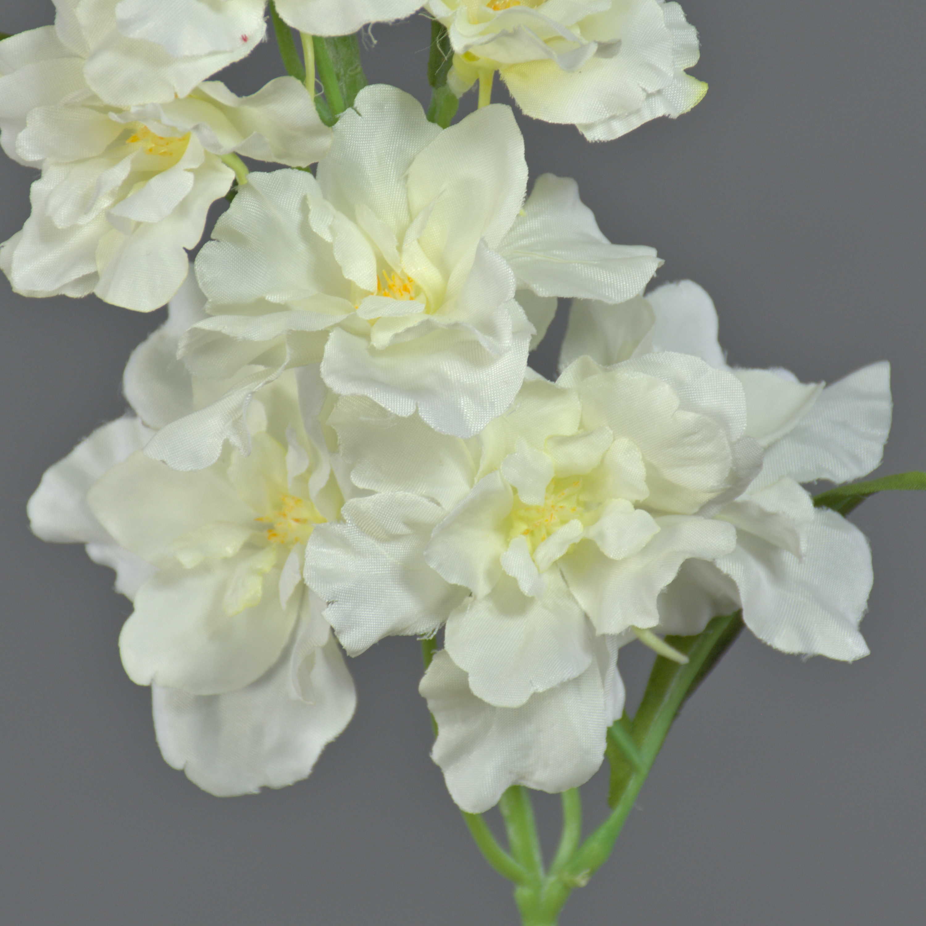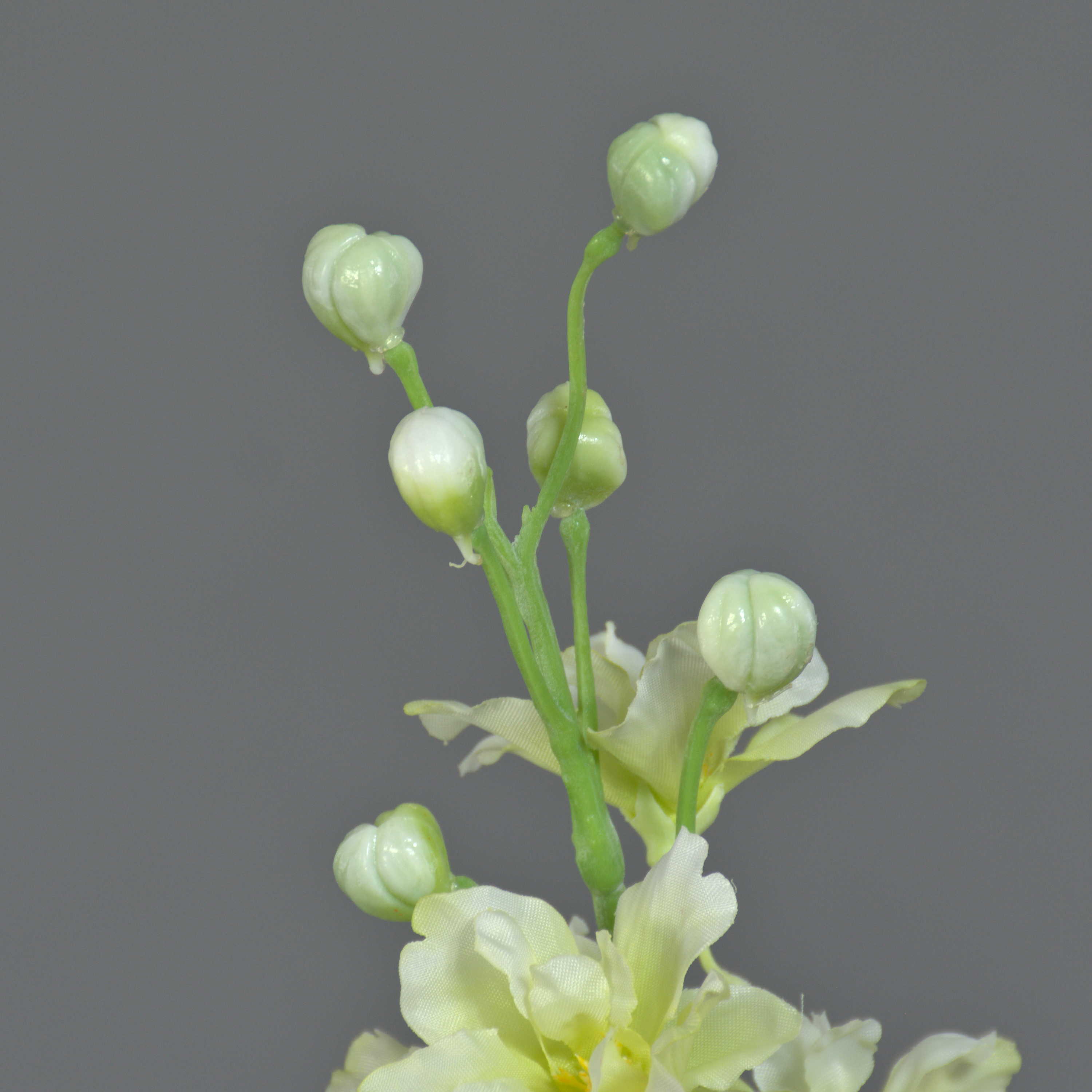 Der künstliche Rittersporn RASMINE in der Farbe weiß-grün hat eine Gesamtlänge von ca. 60 cm und einen Blütendurchmesser von ca. 5-7 cm.