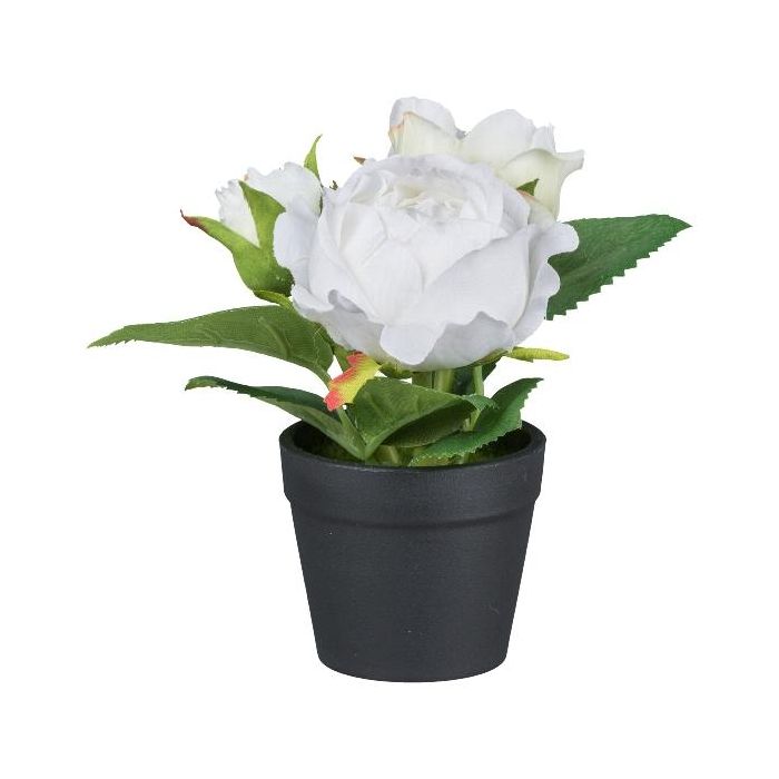 Kunstblume Rose BRALDER im Dekotopf, weiß, 14cm