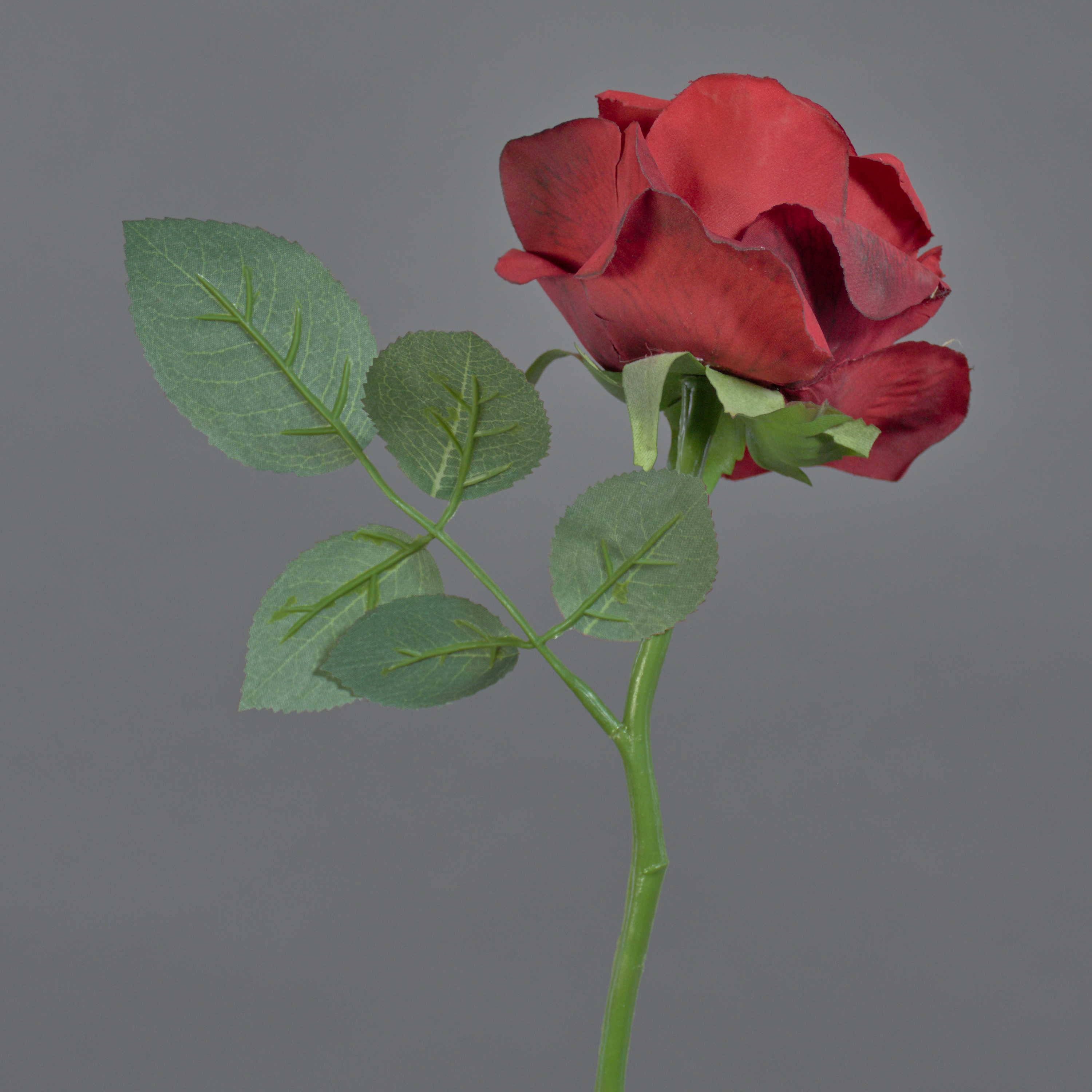 Die künstliche Stielblume NIKOLETA in der Farbe rot hat ein Gesamtmaß von ca. 30 cm und ist auf Stiel befestigt.