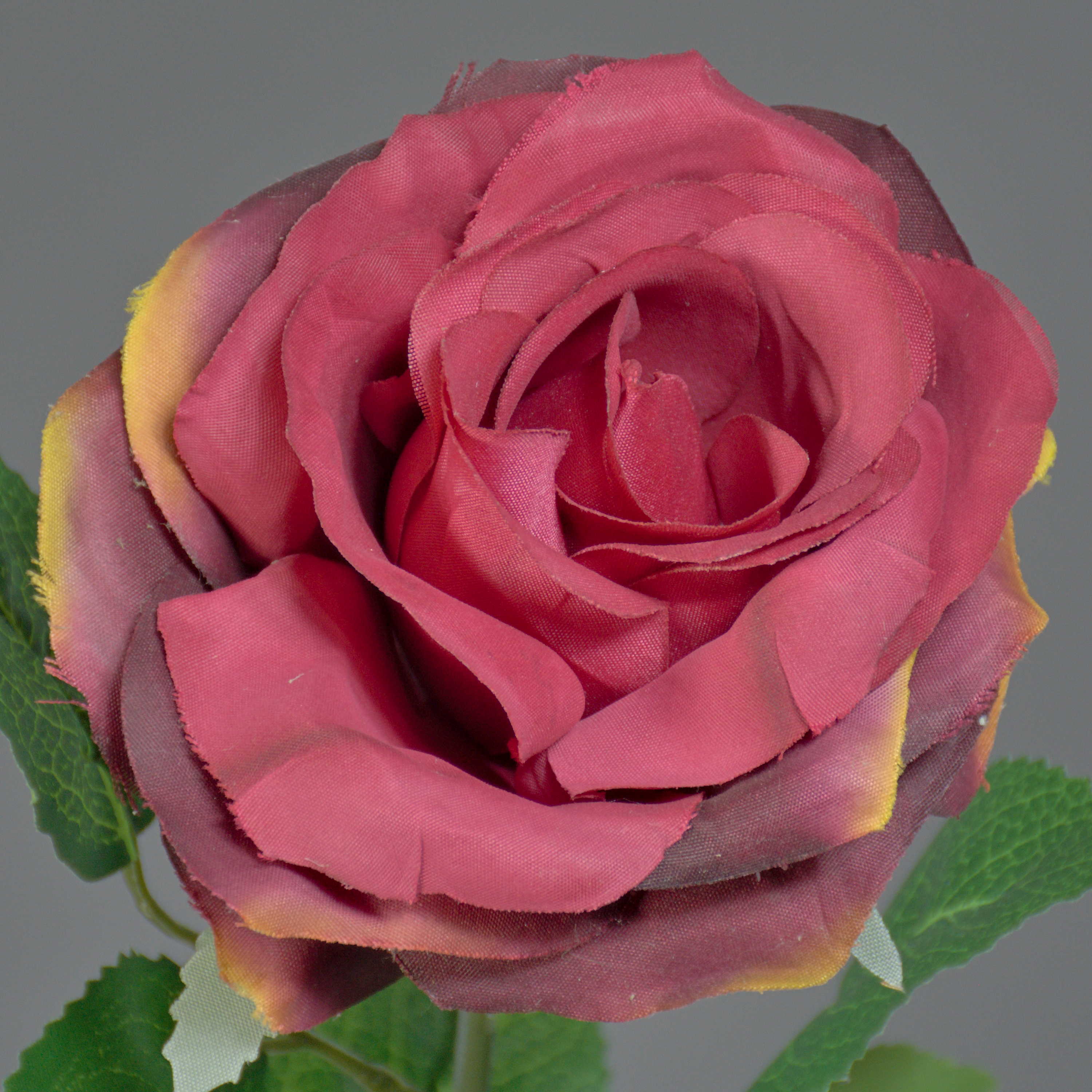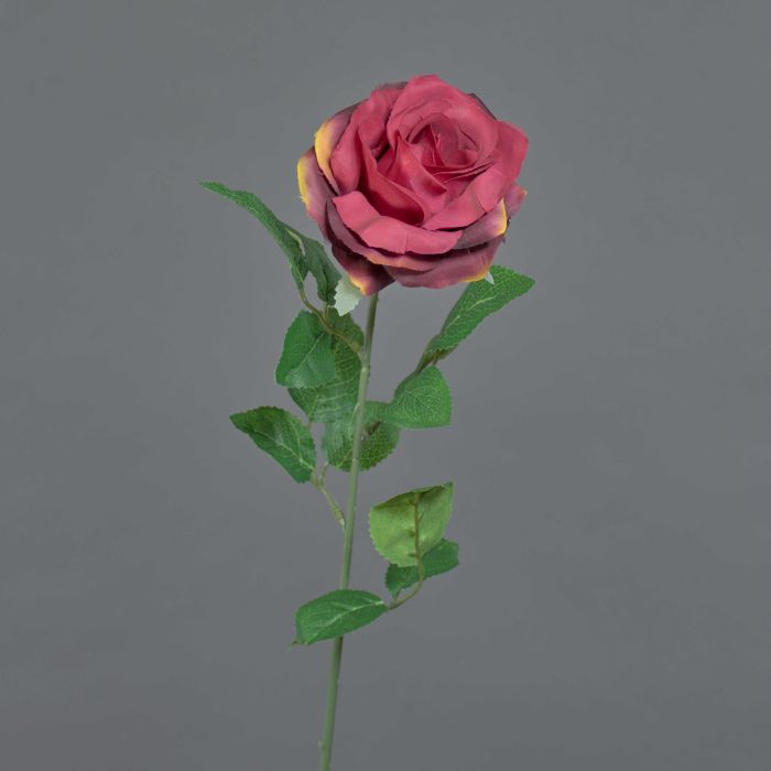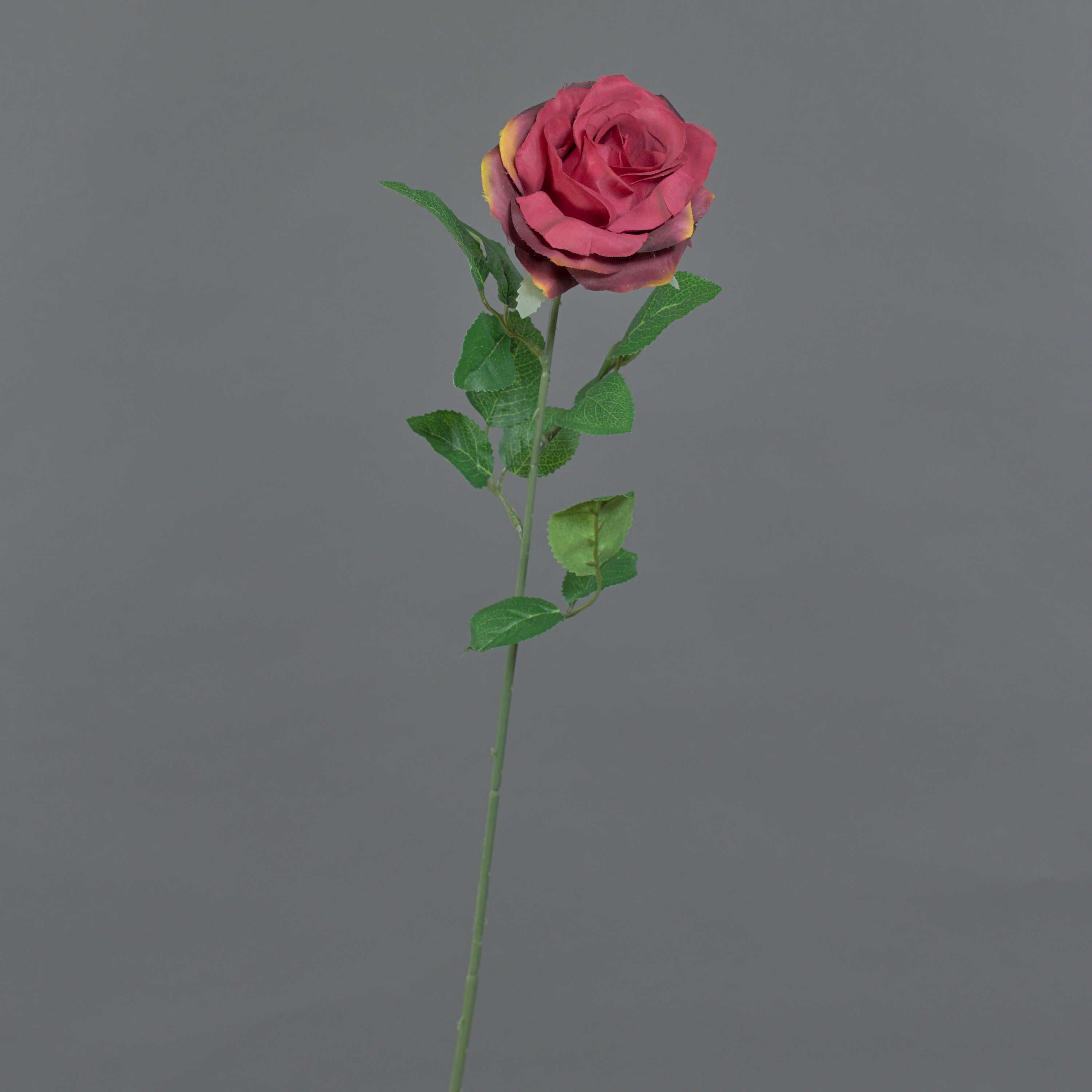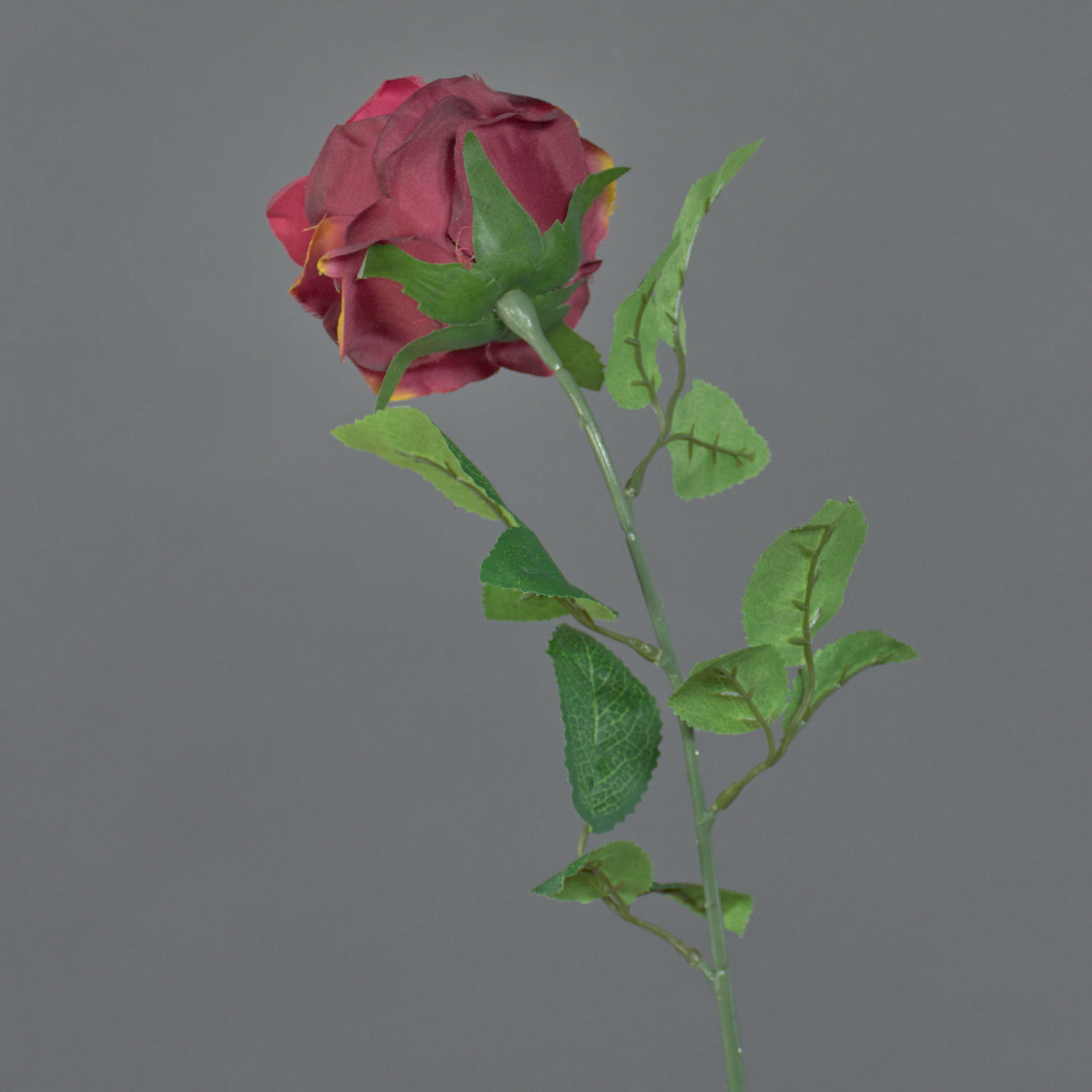Künstliche Blume Rose PEZOS in Farbe burgunderrot ist auf Stiel befestigt und hat eine Länge von ca. 60 cm.