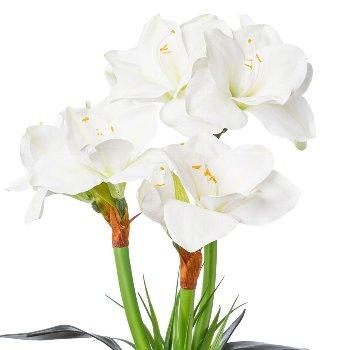 Kunstblumen Gesteck Amaryllis OWELRA mit Gras, Zementtopf, weiß, 55cm
