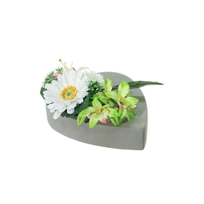- In einem Pflanzherz (ca. 24x20x5 cm) aus Beton mit Möbelschoner zum direkten Hinstellen am gewünschten Platz