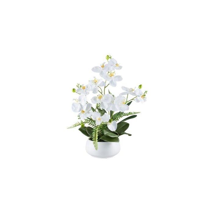 Kunstblumen Gesteck Orchidee Farn SALTER in Keramikschale, weiß, 55cm