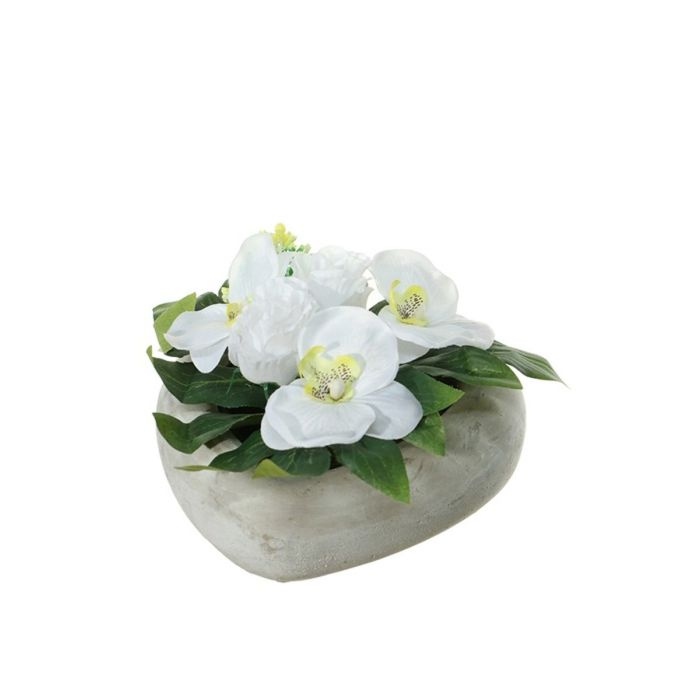 Kunstblumen Gesteck Phalaenopsis Orchidee, Rose DEON, Dekotopf, weiß, 11cm, Ø18cm