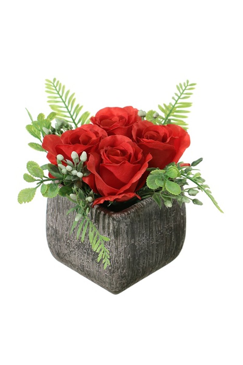 Kunstblumen Gesteck Rose, Johanniskraut ABUD, Dekotopf, rot, 17cm, Ø18cm