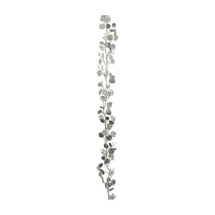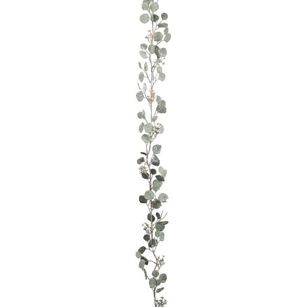 Kunstgirlande Eukalyptus KEMNIR mit Blüten, beschneit, weiß-grün, 175cm