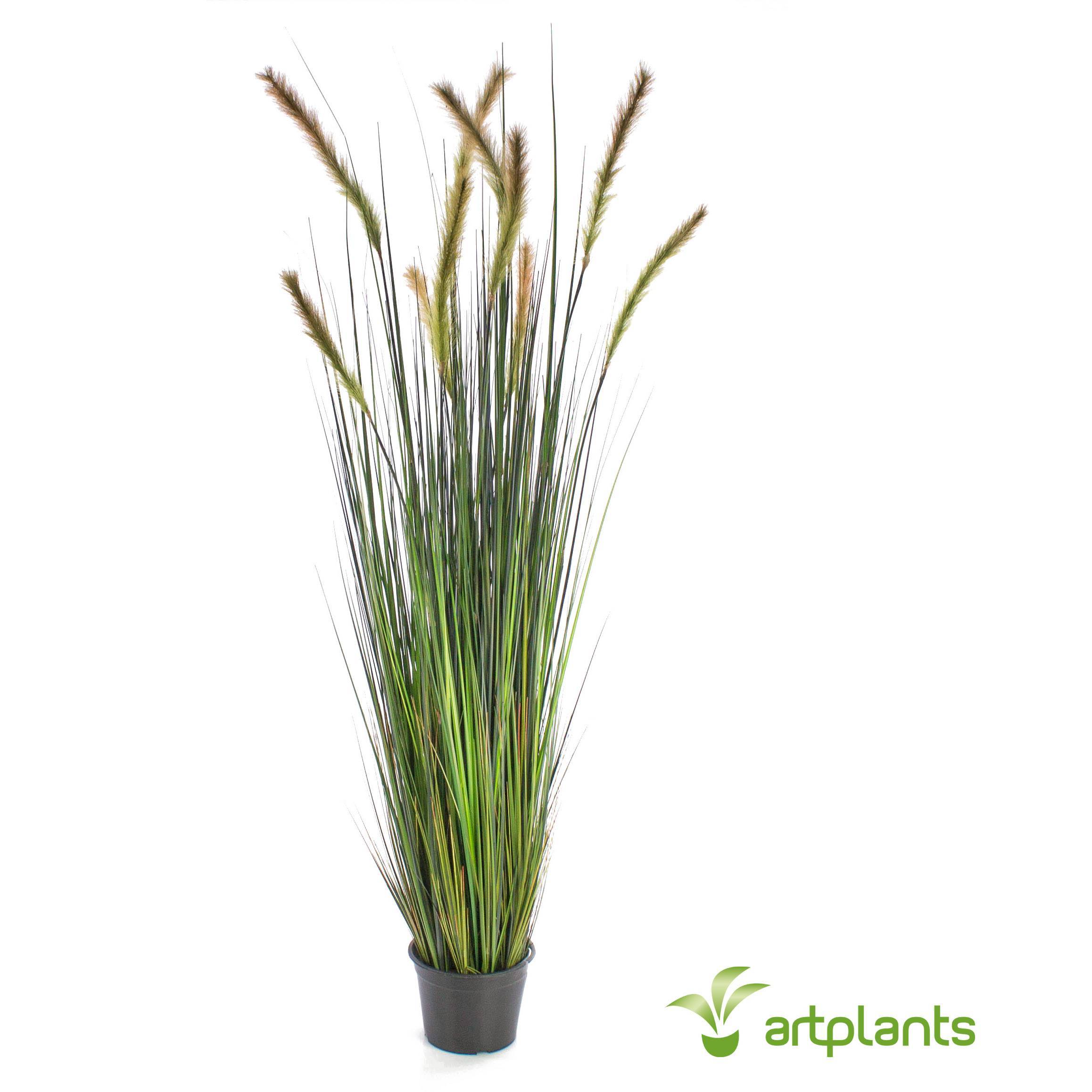 Gras Kunstpflanze Fuchsschwanzgras ANAELLA mit einer Höhe von ca. 150 cm. Das Gras wird im schwarzen Kunststoff Topf (ohne übertopf vom Foto) zur bequemen Befestigung in den übertöpfen geliefert.
