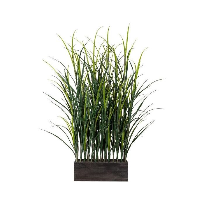 Kunstgras Rutenhirse Raumteiler ULINKA im Holzkasten, grün, 70x50x90cm