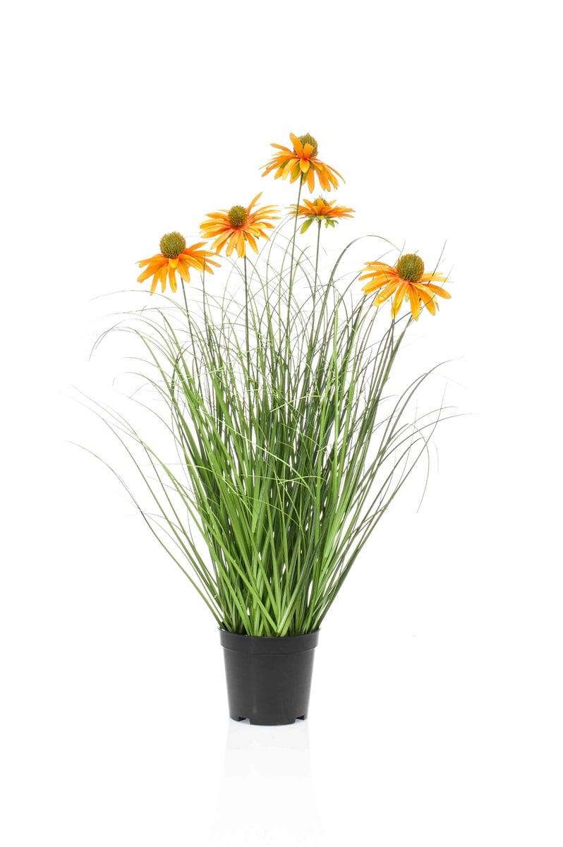 Kunstgras Sonnenhut SHALLA mit Blüten, orange, 60cm