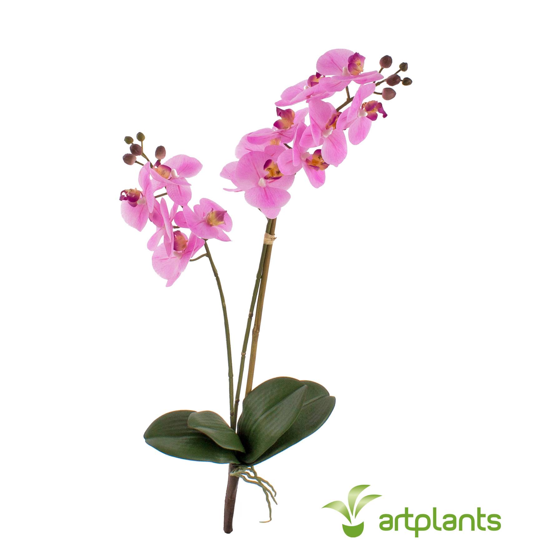 Diese künstliche Phalaenopsis Orchidee CANDIDA mit zwei Blütenrispen rosa Farbe ist eine geschmackvolle Ergänzung zu ihrer Einrichtung im Wohnzimmer, Schlafzimmer oder Esszimmer.