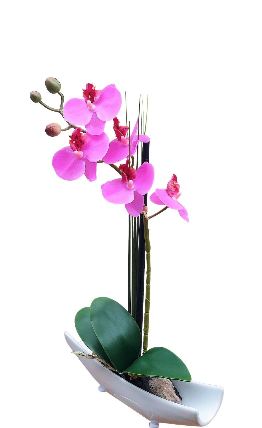 Kunstorchidee Phalaenopsis YANNIE, Schilf, Keramikschale, cerise, 30cm