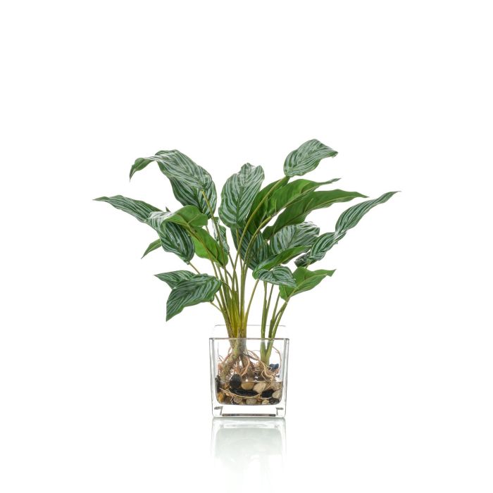 Künstliche Pflanze Aglaonema ADRIK im Deko Glas mit Wurzeln und Kies passt zu jedem Einrichtungsstil und fällt sofort ins Auge.