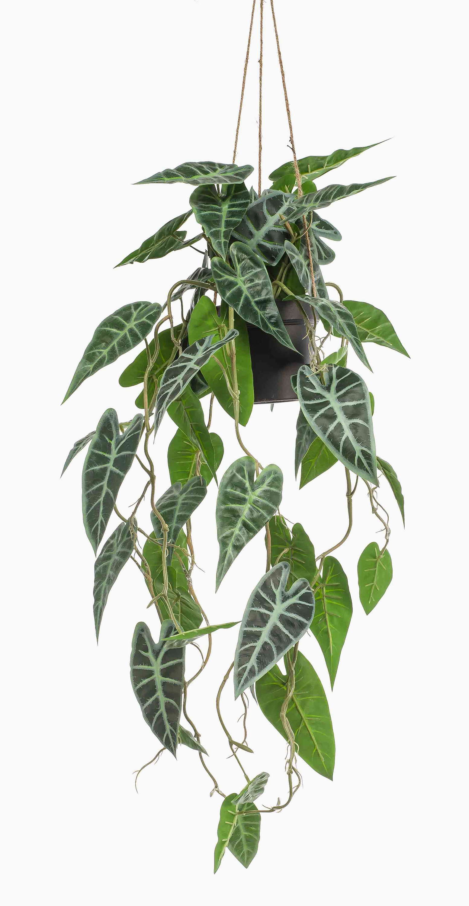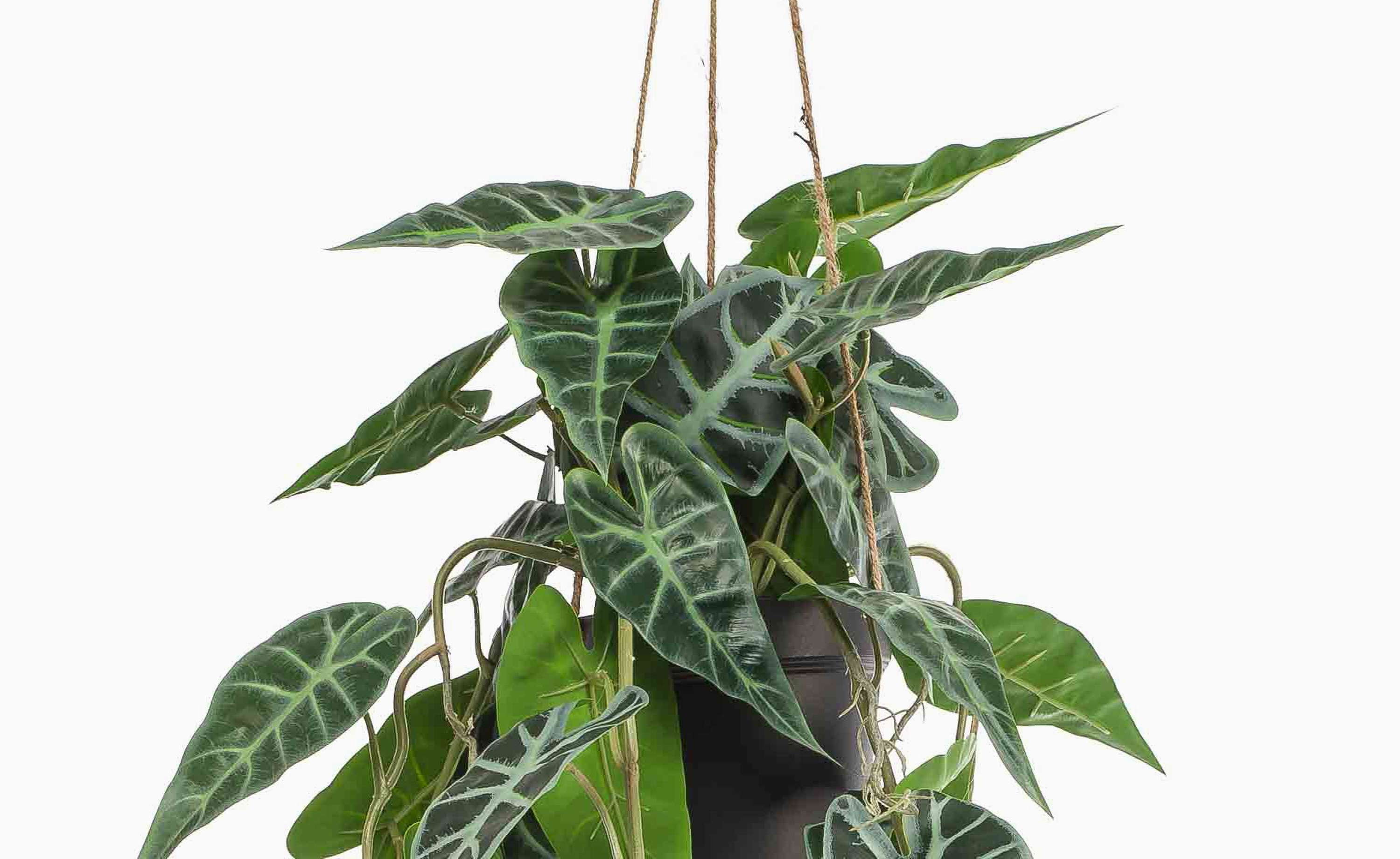Kunstpflanze Alocasia Sanderiana Blumenampel URCO, Dekotopf, grün-weiß, 80cm