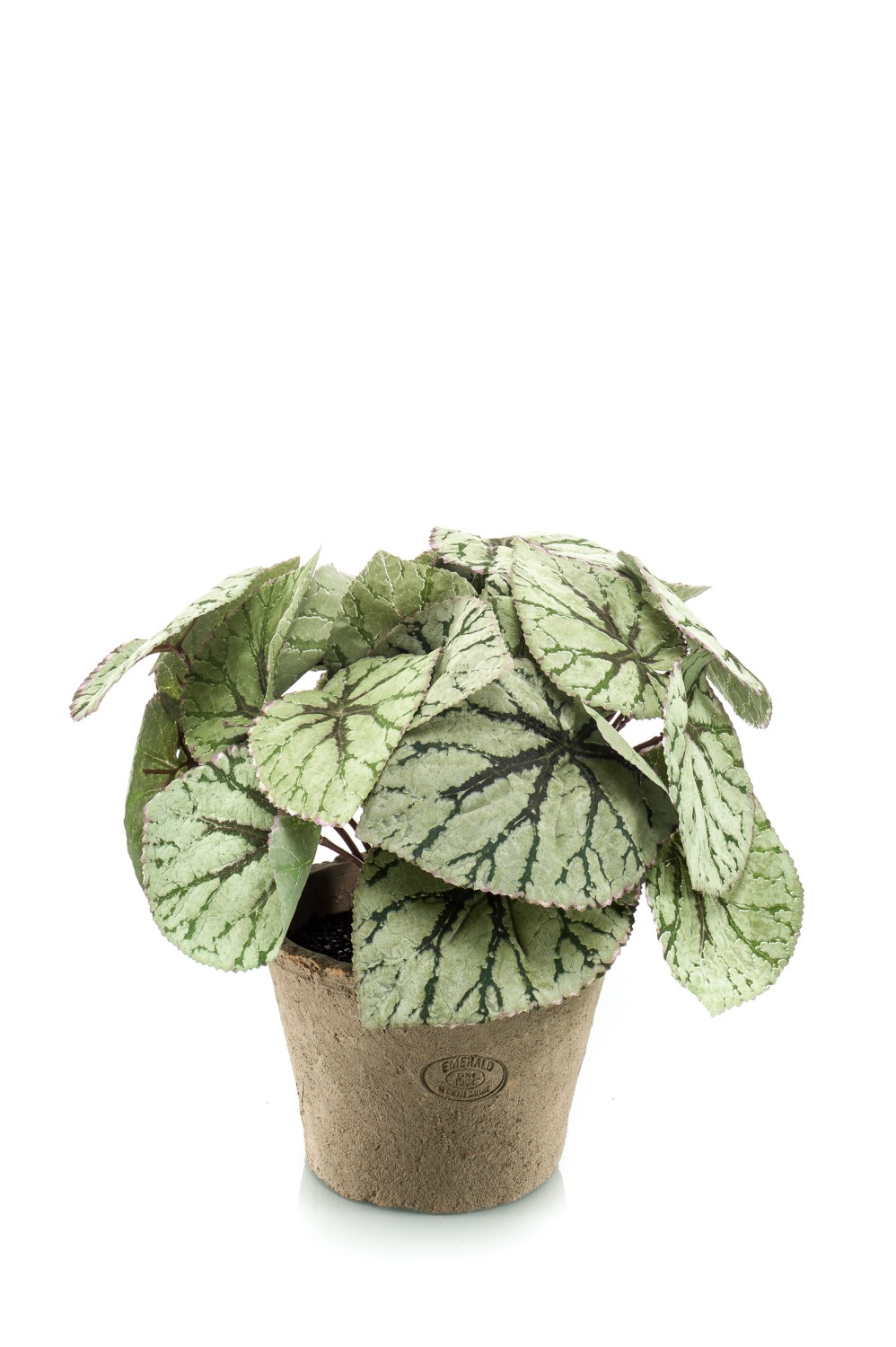 Kunstpflanze Blattbegonie MEIRA im Terracottatopf, buschig, grün-grau, 25cm
