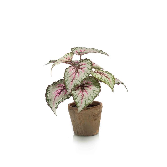 Kunstpflanze Blattbegonie MEIRA im Terracottatopf, grün-rosa, 25cm