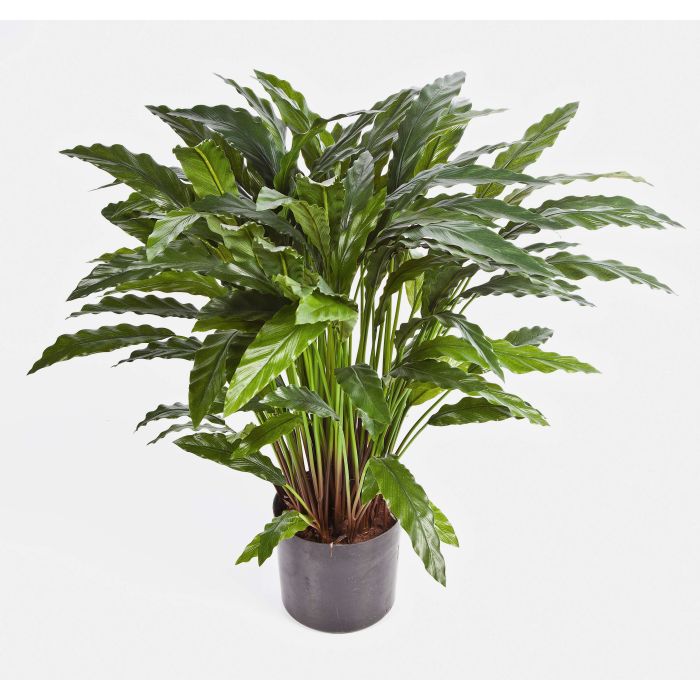 Künstliche Korbmarante BAHATI hat 125 naturgetreuen Blättern. Die Calathea Pflanze ist ca. 85 cm hoch inklusive Zementtopf, dieser ermöglicht es Ihnen die Pflanze sicher und einfach in einem übertopf oder Arrangement Gefäß zu befestigen.