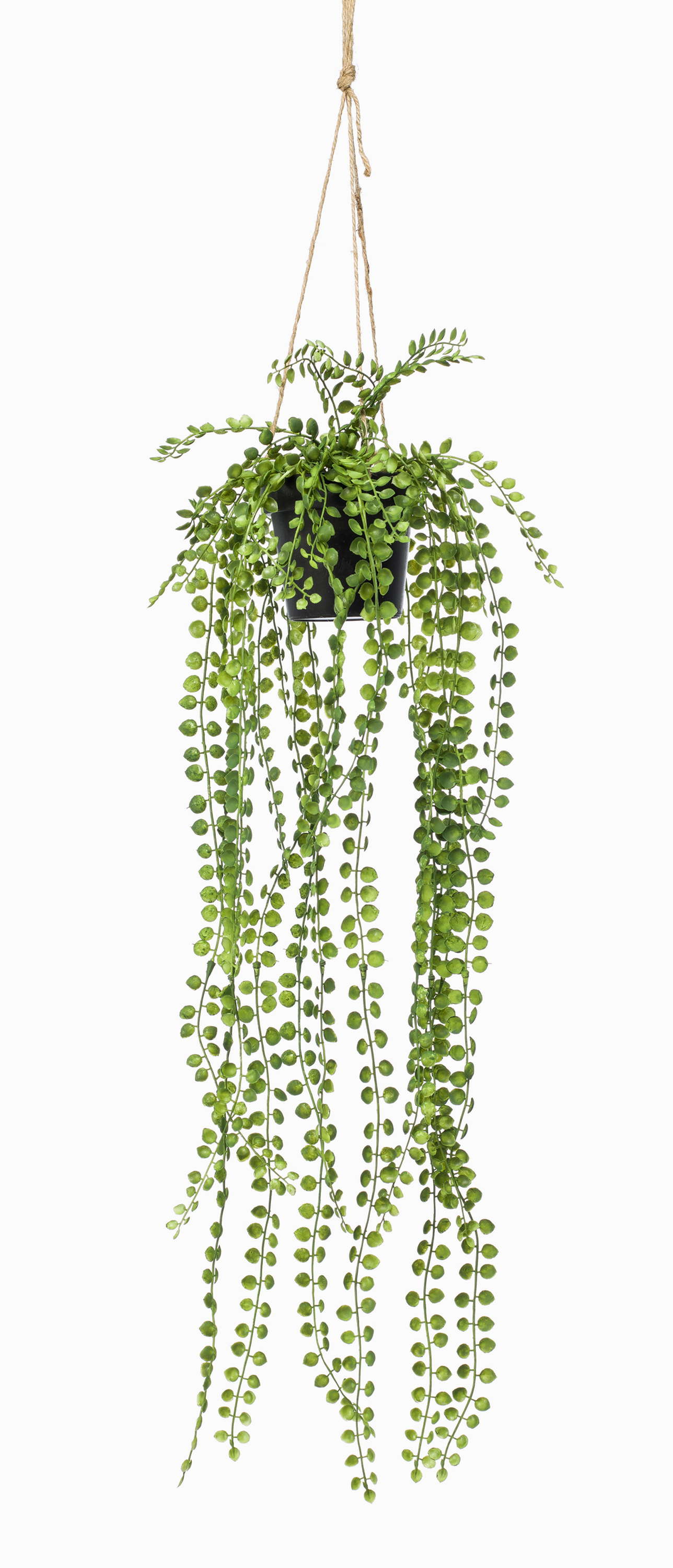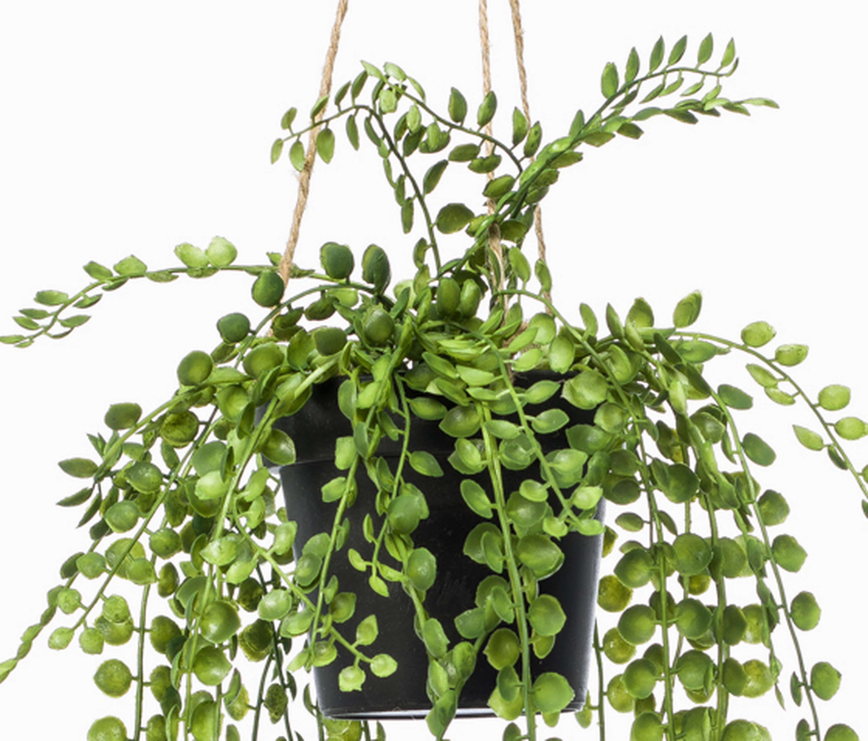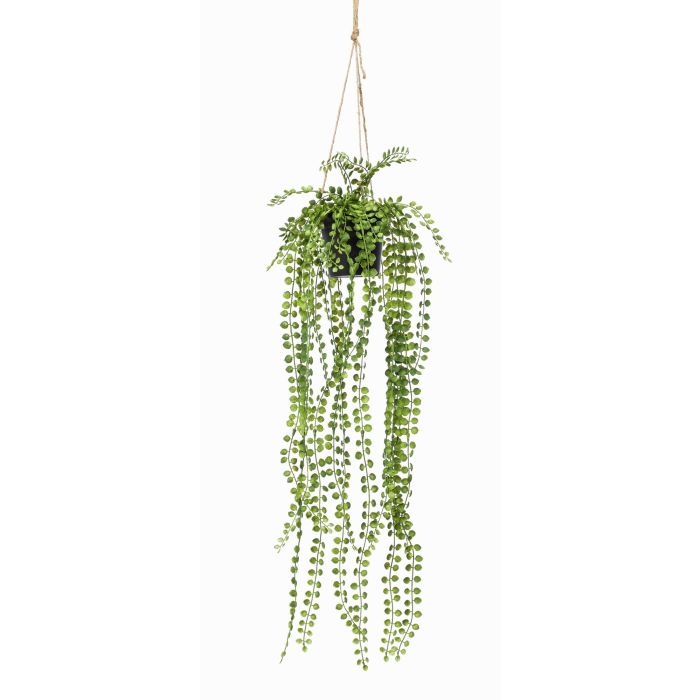Die künstliche Pflanze PANJA ist mit ihren runden grünen Blättern eine hübsche Hängepflanze. Auf einer Blumentreppe oder -säule rundet sie den wohnlichen Anblick in ihrem Wohn-, Ess- oder Schlafzimmer ab.