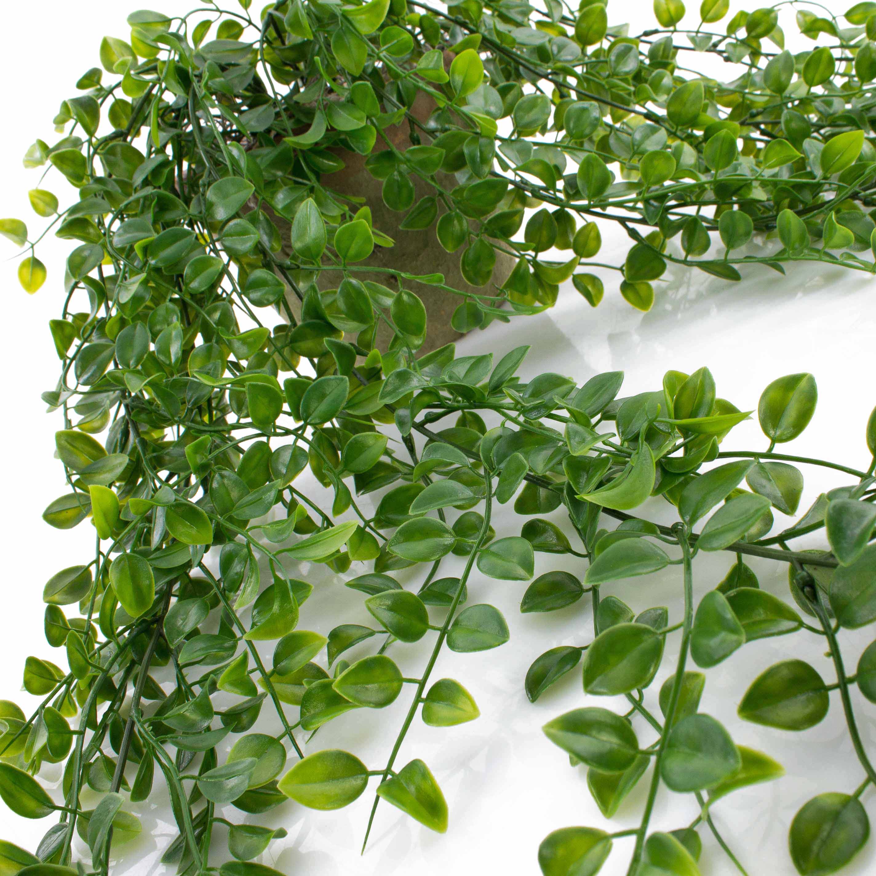- 6 hängende verästelte Ranken mit zahlreichen runden Blättern aus grünem Kunststoff