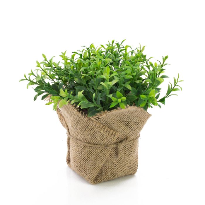 Künstliche Kräuter Kresse VITUS mit Blättern in unterschiedlichen Farbnuancen für ein natürliches Erscheinungsbild. Der künstliche Kräuterbusch wird in einem dekorativen Säckchen aus Jute.