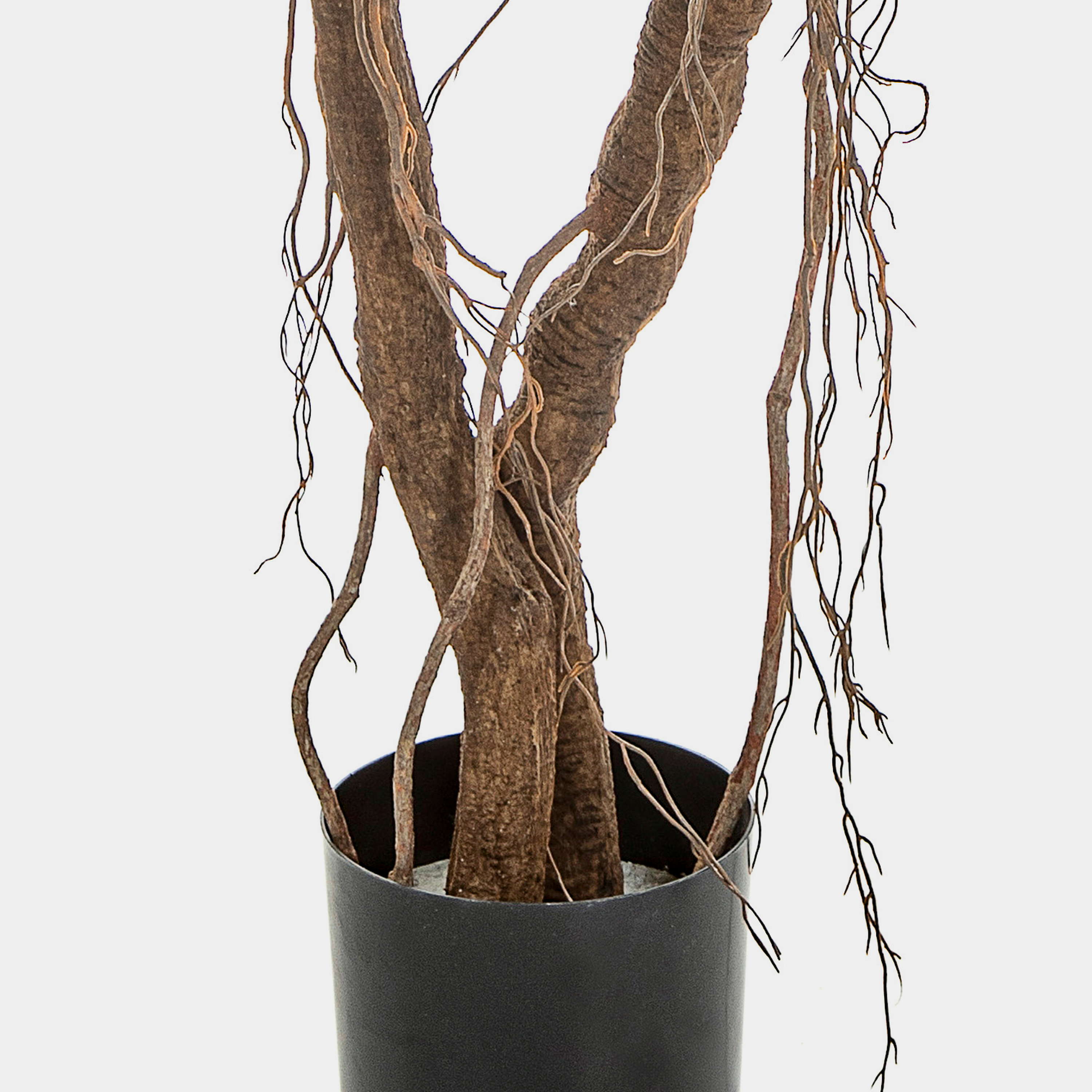 - Die ca. 18 großen geschlitzten Blätter sind an einem realistisch aussehenden Stamm befestigt, mit Luftwurzeln