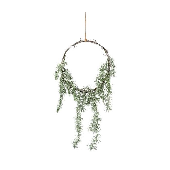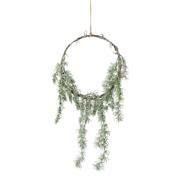 Kunstpflanzen Traumfänger VERBA mit Zeder, beschneit, hängend, grün-weiß, 75cm