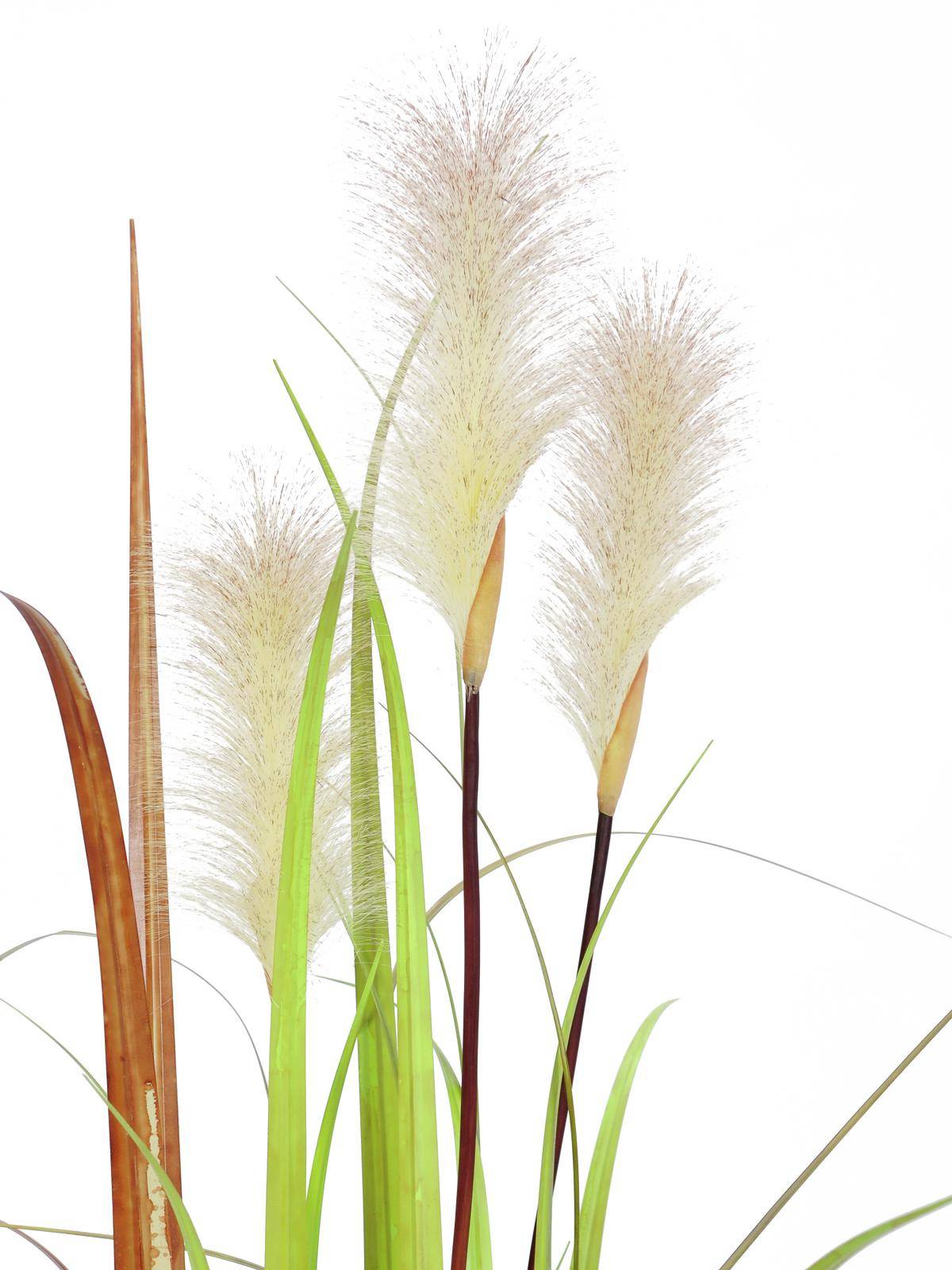 - hochwertig gearbeitete verschiedene Grashalme real-touch in Fb: grün-braun; sehr dichte Ausführung sowie täuschend echt aussehende 3 Blütenrispen in Farbe creme