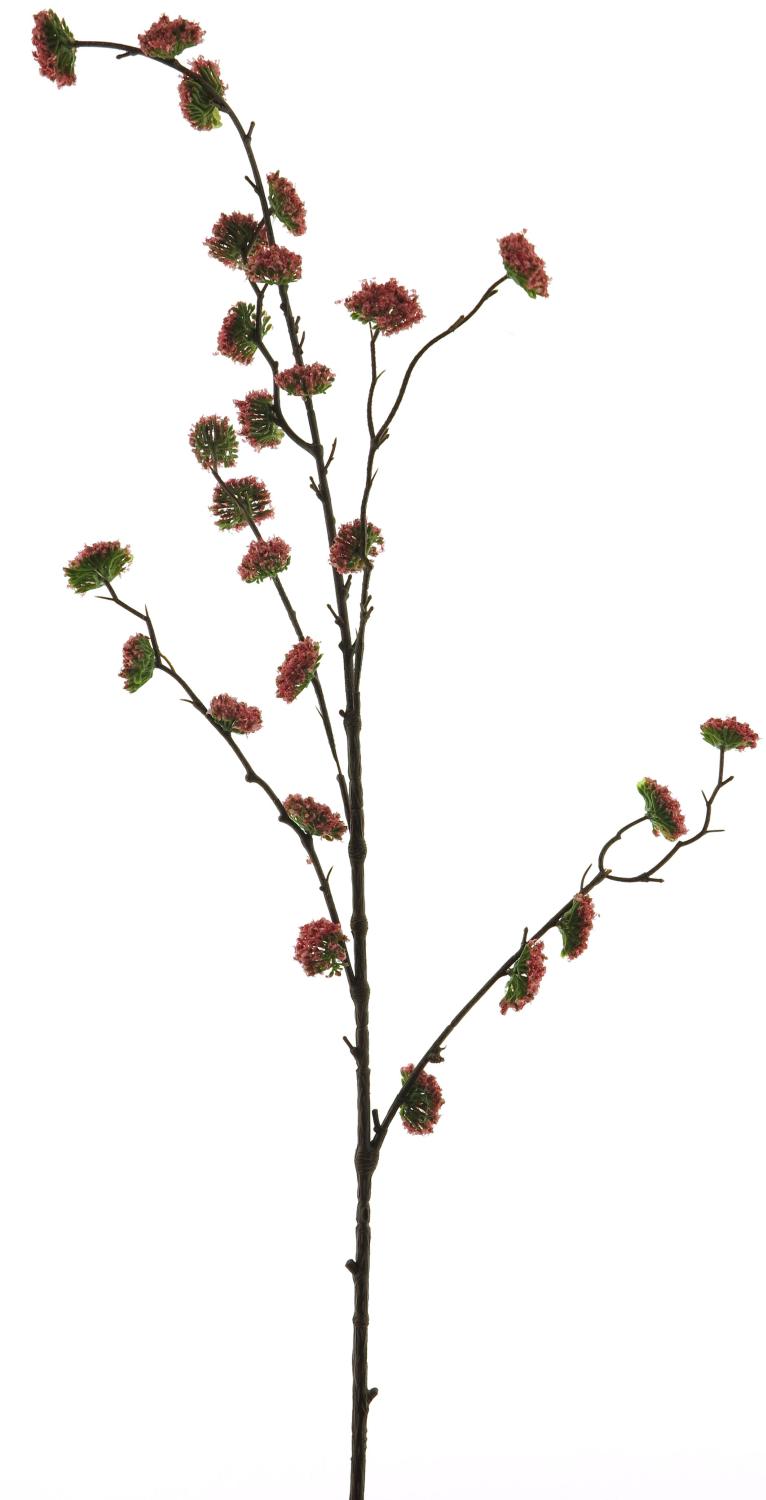 Der dekorative Blütenzweig DEYONG in Farbe rot-grün hat eine Länge von ca. 90 cm.