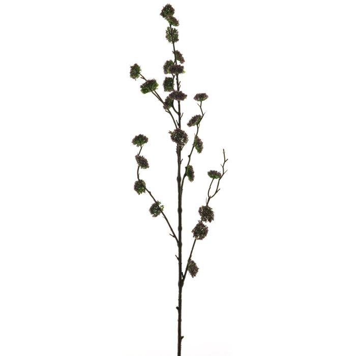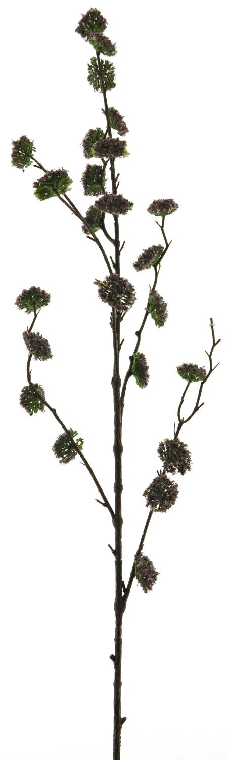 Der dekorative Blütenzweig DEYONG in Farbe violett-grün hat eine Länge von ca. 90 cm.