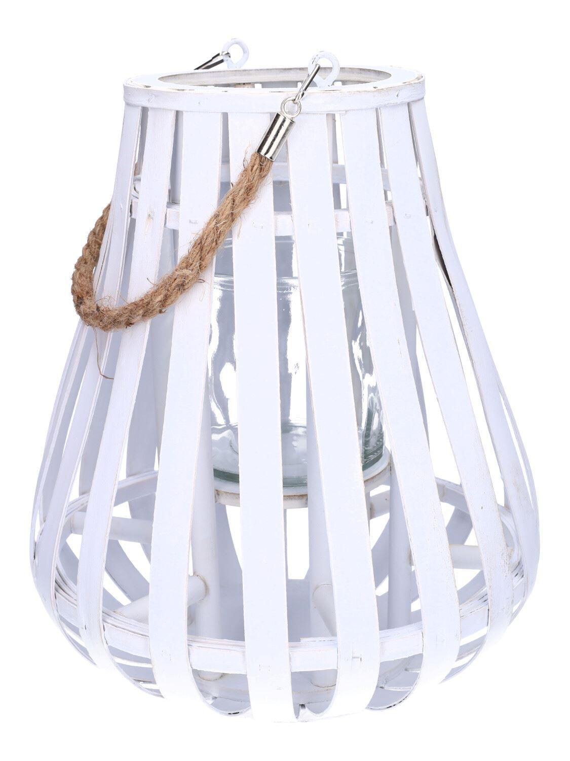 Laterne ALVARU aus Rattan, mit Kerzenglas, Henkel, weiß, 31cm, Ø24cm